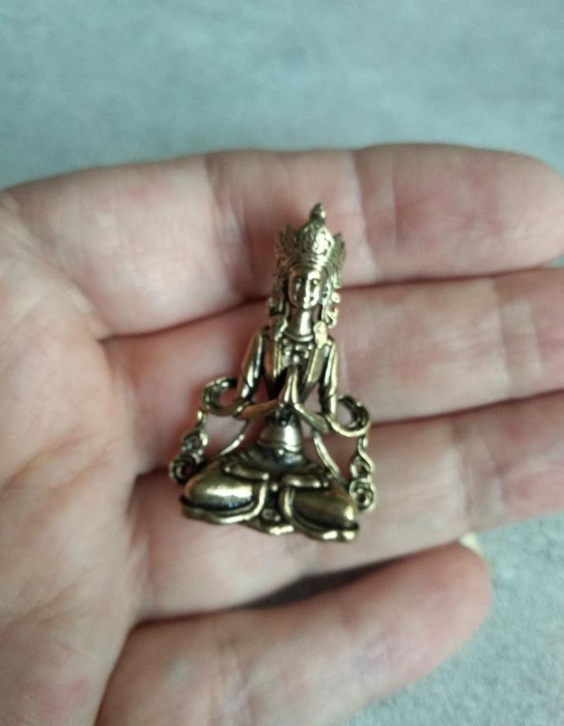 Маленькая фигурка, но только это не Будда У фигурки женская грудь..... 🌺Благодаря подсказки в комментариях я узнала, что это наиболее популярная из трех главных божеств китайско-буддийского пантеон- бодисатва ГУАНЬ-ИНЬ (Авалокитешвара), превратившаяся в Китае в богиню милосердия и добродетели и играющая там роль, сопоставимую с ролью Девы Марии в христианских странах. Она является покровительницей женщин, материнства, младенцев. Цитата из лотосовой сутры: «Если женщина желает иметь сына, пусть она с поклонами и почтением принесет свои мольбы Гуаньинь. И тогда через должный промежуток времени она родит сына, отмеченного счастьем, умом и добродетелью» 🌺🌺🌺🌺🌺