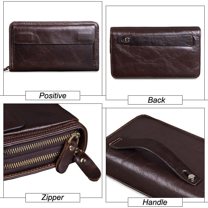 MISFITS Мужские кошельки-клатчи из коровьей кожи, длинные кошельки из натуральной кожи, деловой кошелек большой емкости, сумка для телефона на двойной молнии для мужчин