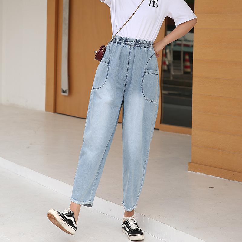 Женские джинсы больших размеров L-6XL, женские брюки, летние тонкие брюки-фонарики, повседневные свободные повседневные женские джинсы большого размера, брюки — купить товар онлайн с бесплатной доставкой по всему миру!