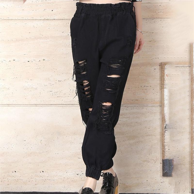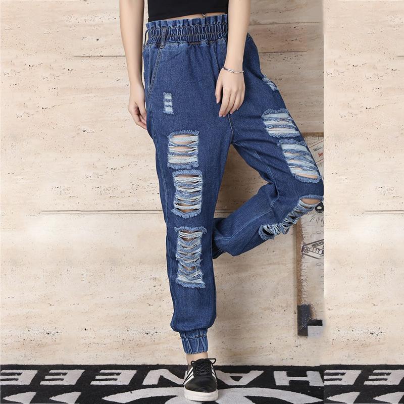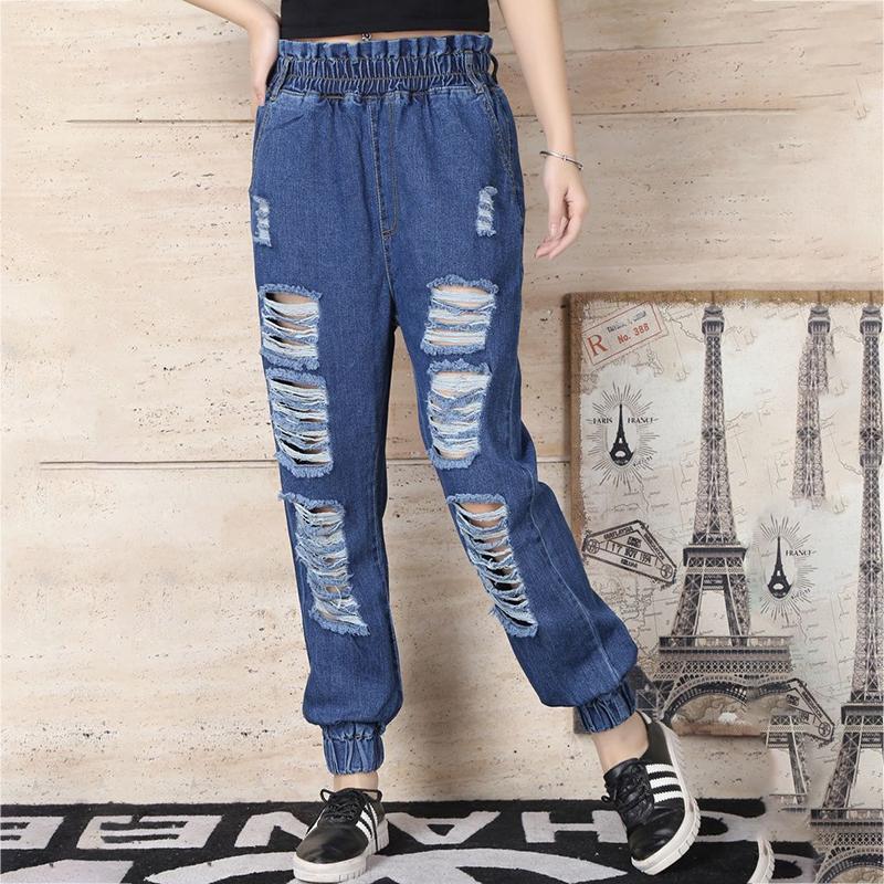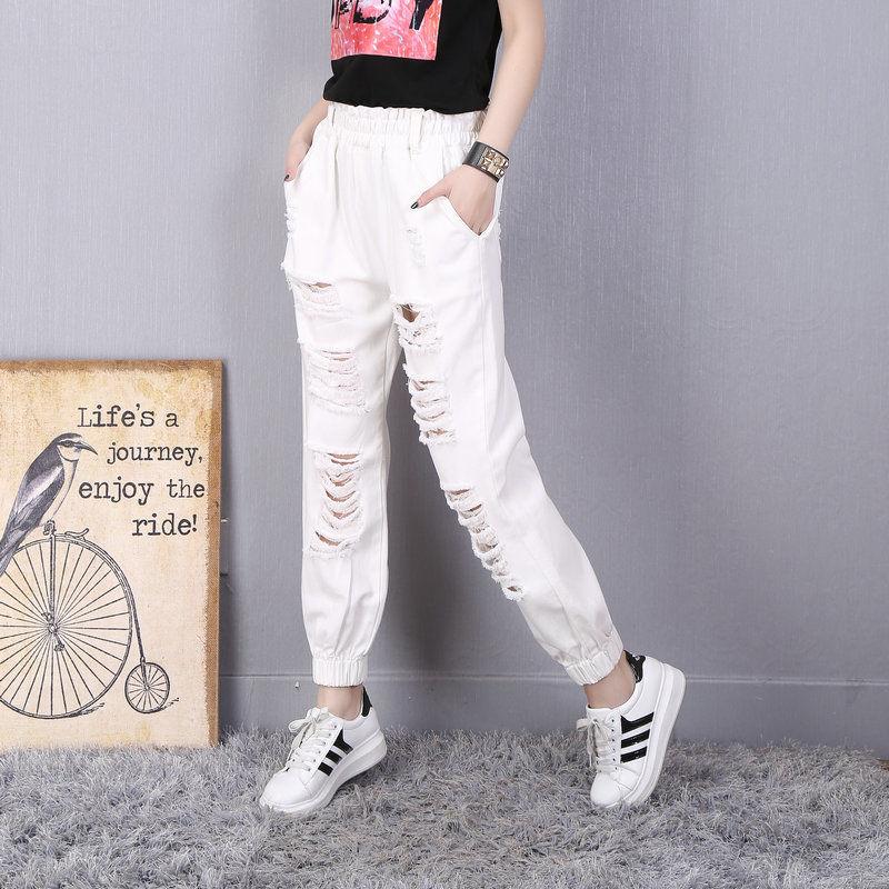 WTEMPO Женские джинсы Шаровары с эластичной резинкой на талии Белые, черные, синие рваные джинсы Женские весенне-летние укороченные брюки Свободные брюки