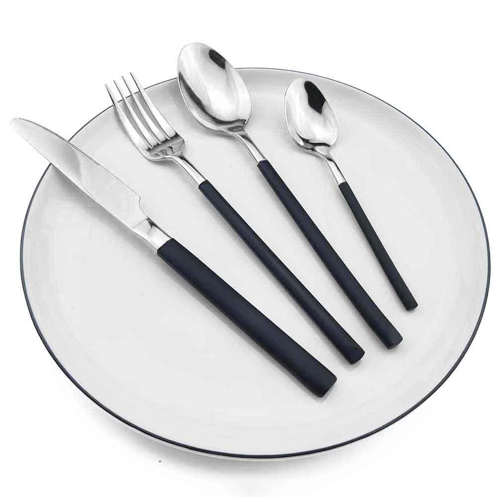 Роскошный черный, серебряный столовый сервиз из нержавеющей стали, набор столовых приборов с черной ручкой, зеркальный, серебряный нож, чайная ложка, вилка, столовая посуда, 1 шт. — купить товар онлайн с бесплатной доставкой по всему миру!