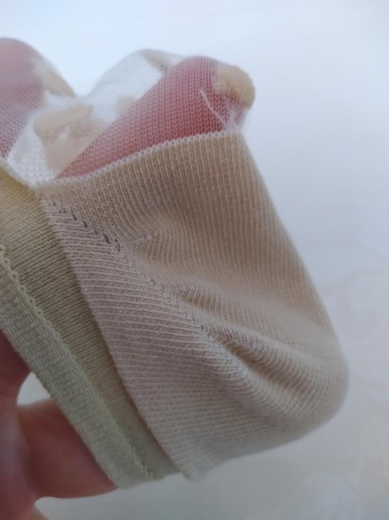 Носочки очень симпатичные, довольно прочные. Четвёрку поставила потому, что ожидала более тонкие. Немного грубоватая резинка на мой взгляд. Хотя всё соответствует описанию. Носить думаю буду с удовольствием, пока жара, ещё не выгуливала. Размер на мой 36 ( 23 см) подошёл отлично, ещё могут растянуться на 37-38, на больший размер вряд ли подойдут.