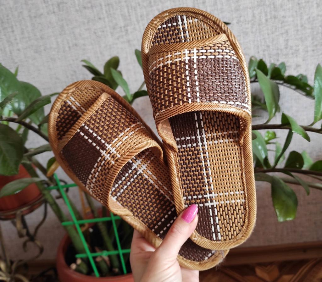 ❤Всем привет! ❤Держите промокод на скидку 5% - QEGS92ADDL. ❤🖒Тапочки из ротанга с открытым носком. 🛫Доставка составила чуть больше двух недель, посылка отслеживалась до почтового отделения. 📌Тапочки аккуратные, прочные швы. Очень удобные на ноге. 📌Тест на стирку пройден! Не потеряли своего первозданного вида. 📌Подошва резиновая – это залог комфорта и безопасности. Легко гнется. 📌Размер выбрала 38-39. На 38 как раз, на 39, думаю тоже. 📌Тапочки предназначены для ежедневного использования, а так же будут незаменимы во время приема гостей. ❤🖒Я покупкой довольна и смело рекомендую Вам приобрести такие тапочки!