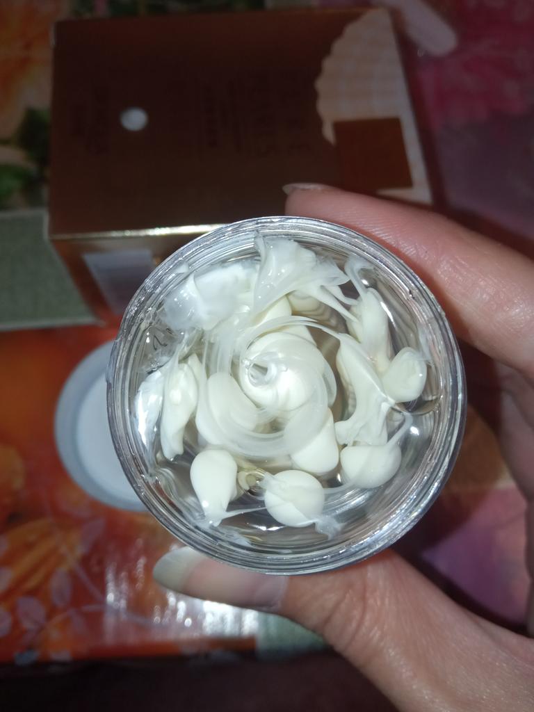 Крем с гиалуроновой кислотой!Я даже не могу передать до чего он красивый и очень приятно пахнет!😇 Вид точно такой ,как на фото.Капельки белого крема в геле.Наносить одно удовольствие.Хорошо увлажняет и не вызвал негативных реакций.Баночка защищена слюдой,а вот сама упаковка мятая пришла.Конечно мне пофигу ,а вот если дарить,то вид не призентабильный. Крем как по мне супер!Я наношу его вечером на чистую кожу и кайфую от это процесса😊 О результате пока сказать не могу так как пользуюсь парк дней.Поэтому кому интересно 👀 пишите отвечу что и как😊 Данный товар я купила и мне все нравится 👍👌