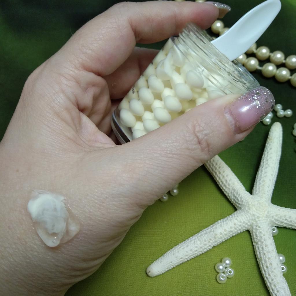 🐌⚪🐚 НОЧНАЯ УВЛАЖНЯЮЩАЯ ГЕЛЕОБРАЗНАЯ МАСКА С ЖЕМЧУЖИНАМИ ОТ БРЕНДА BIOAQUA 🐌⚪🐚 Этот продукт я беру уже во второй раз, только в меньшем объеме. В первый раз я приобрела для себя любимой огромную банку ёмкостью 120 грамм. А теперь я решила купить баночку поменьше уже на подарок. Ведь это косметика класса ЛЮКС!....Нет слов! Шикарный продукт! Нравится до безумия... Хоть продавец и позиционирует это уходовое средство как маску, но я могу ее назвать как гелеобразный крем. В моем понимании маску после применения обычно смывают. Это же средство просто впитывается Вашей кожей и смывать его не нужно. Наносить следует на ночь. А утром Ваша кожа будет выглядеть как заново рождённая. Маска прекрасно увлажняет кожу лица, борется с мимическими морщинками, придает здоровый вид. Продукт я получила в фирменной упаковке, на которой есть полезная информация об его использовании. Отмечу, что объем составляет 60 грамм. Расход очень экономичный. Маска наносится совсем понемногу. Буквально горошинами. Консистенция у маски густая и представляет собой прозрачный гель, заполненный белыми кремообразными горошинами. На коже я смешиваю капельку геля с кремом до однородной массы. А какой обалденный аромат! Тонкий, нежный, приятный и завораживающий. Я уловила запах пиона. Радует, что в комплекте с маской идёт специальная лопаточка для нанесения продукта. Не сомневаюсь в том, что мой подарок понравится! Ведь мною уважаемый бренд подтвердил ещё раз свой солидный статус и высокое качество продукции. Поэтому однозначно берём и ходим красивыми! 🐌⚪🐚