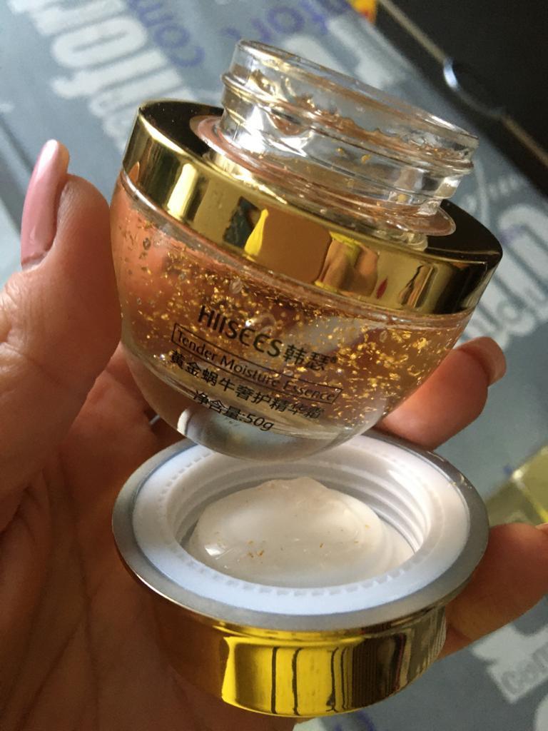 Крем для лица HIISEES. 24K GOLD. Привет, друзья! 😊 📌 Кремчик куплен для супруги. 📌 Баночка с кремом ёмкостью 50г была упакована в коробочку правильной формы, все исполнено в золотых цветах. При транспортировке углы изрядно помялись, ёмкость не повредилась. 📌 На баночке присутствует информация о продукте на двух языках. 📌 Крем эффективно питает, увлажняет и омолаживает кожу, повышает упругость и обеспечивает интенсивное обновление и восстановление кожи, морщины разглаживаются, а кожа приобретает свежий красивый вид.Коллоидное золото в составе средства проникает в глубокие слои кожи и действенно нормализует синтез коллагена и эластина, что приводит к уплотнению, подтягиванию и разглаживанию кожи, способствует увлажнению, восстановлению и питанию. 📌 Супруге крем понравился! 👌 Приятных Вам покупок! 😊👍