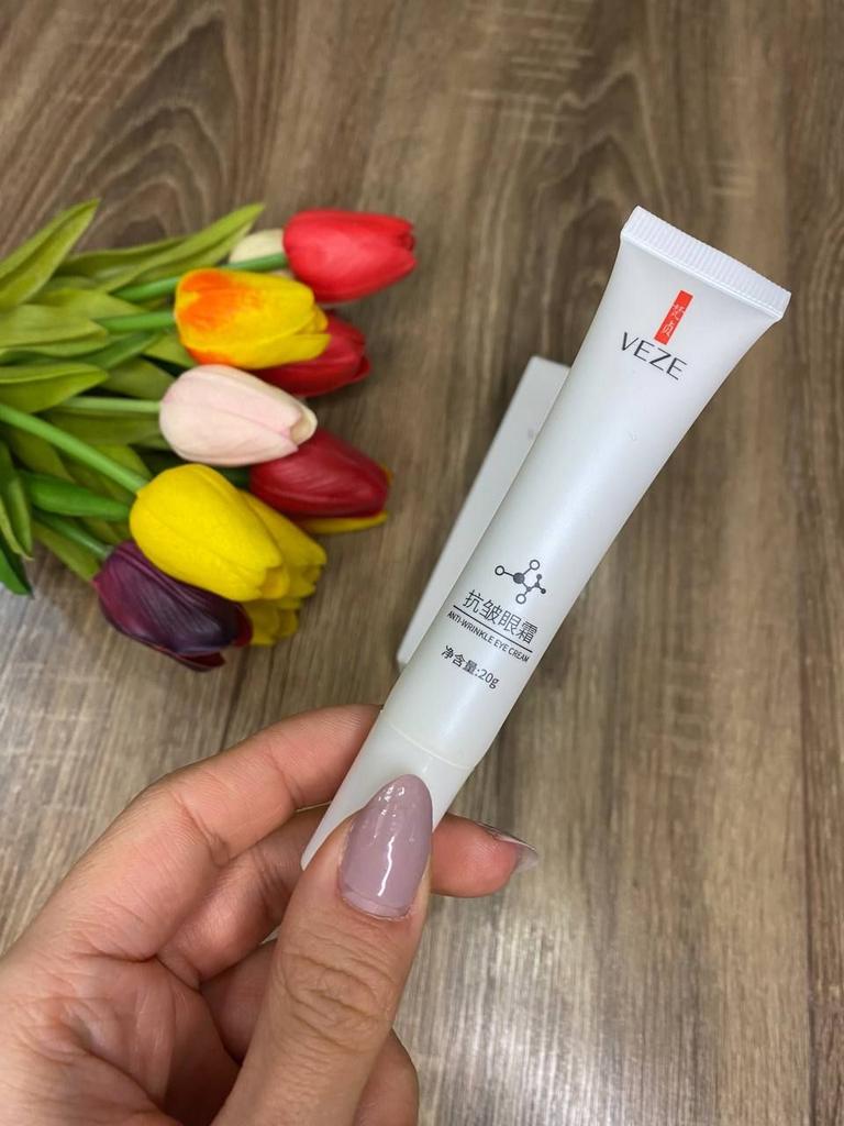 Нанесите крем для глаз на оба глаза, сделайте форму V пальцами, нанесите гладкий крем для глаз с обеих сторон, повторите 3 раза;