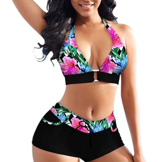 Одежда Топы Лето Женщины Бикини Печатный Глубокий V-образным Вырезом Холтер Бюстгальтер Низкая Посадка Микро Шорты Трусы Купальник Комплект