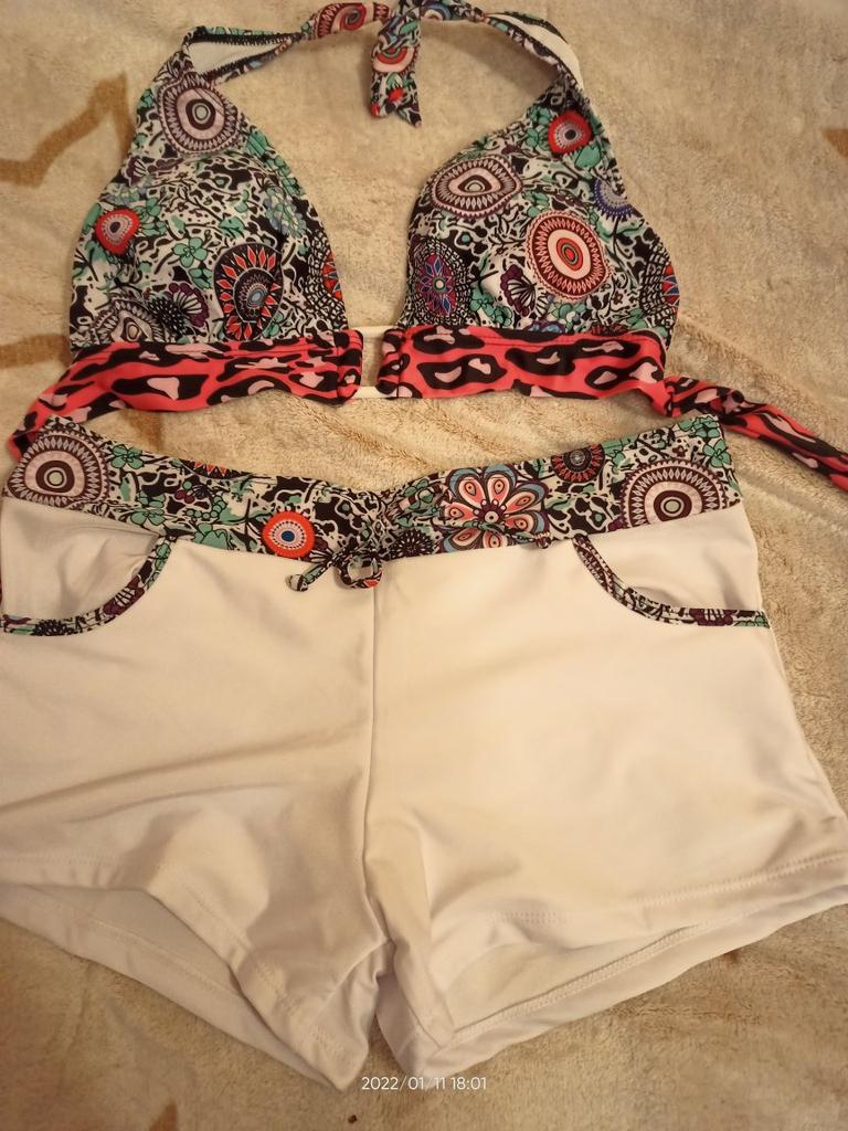 Купальник получила. Очень классный. Смотрится супер современно. Верх купальника на ОГ- 106см великоват, да и шортики на ОБ - 108 можно брать на размер меньше. А в целом купальник смотрится очень модно, современно и стильно. Упаковано аккуратно. , строчки ровные, нитки не торчат. Спасибо продавцу. Но заказ шел очень долго. Отправлен был совсем не по адресу и долго ходил по Украине. Но все таки пришел. Спасибо Joom. На будущее советую отправителю быть аккуратнее с оправкой в нужный город.