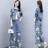 Джинсовая куртка из 2 предметов, широкие брюки, костюм, женский повседневный модный тонкий пиджак, брюки, комплект из двух предметов