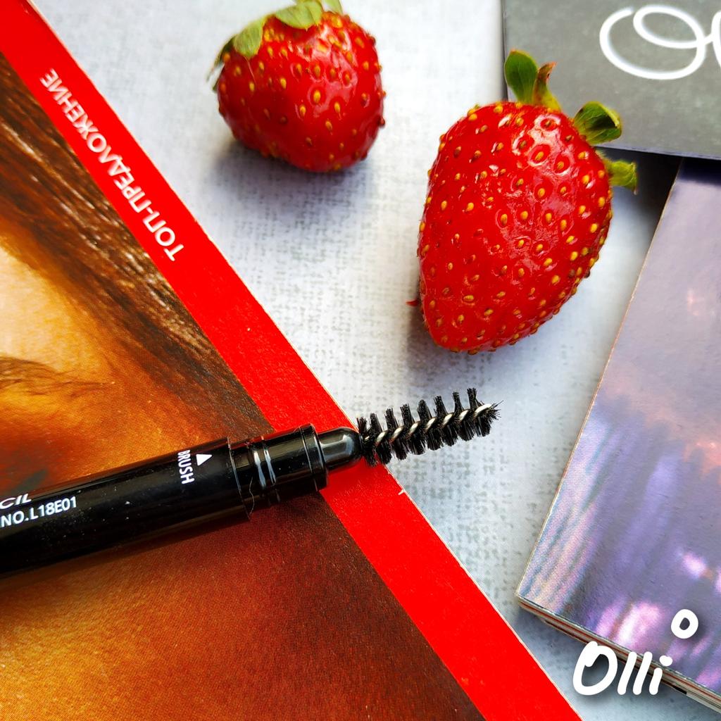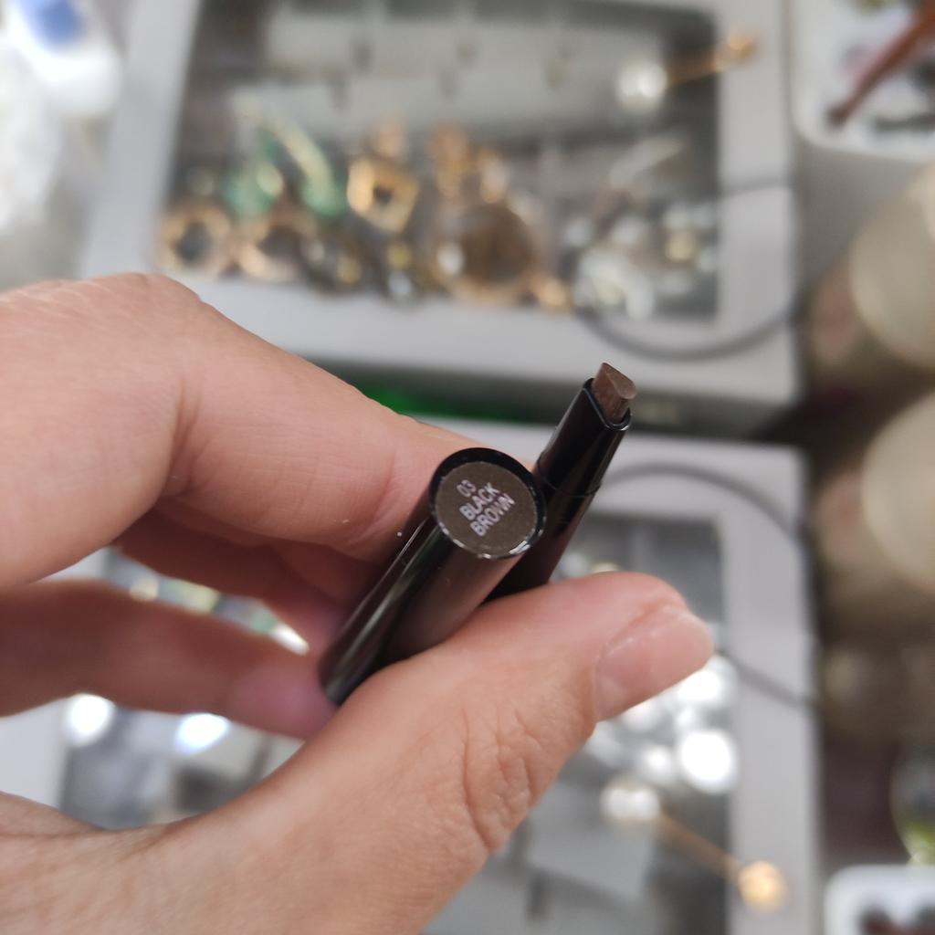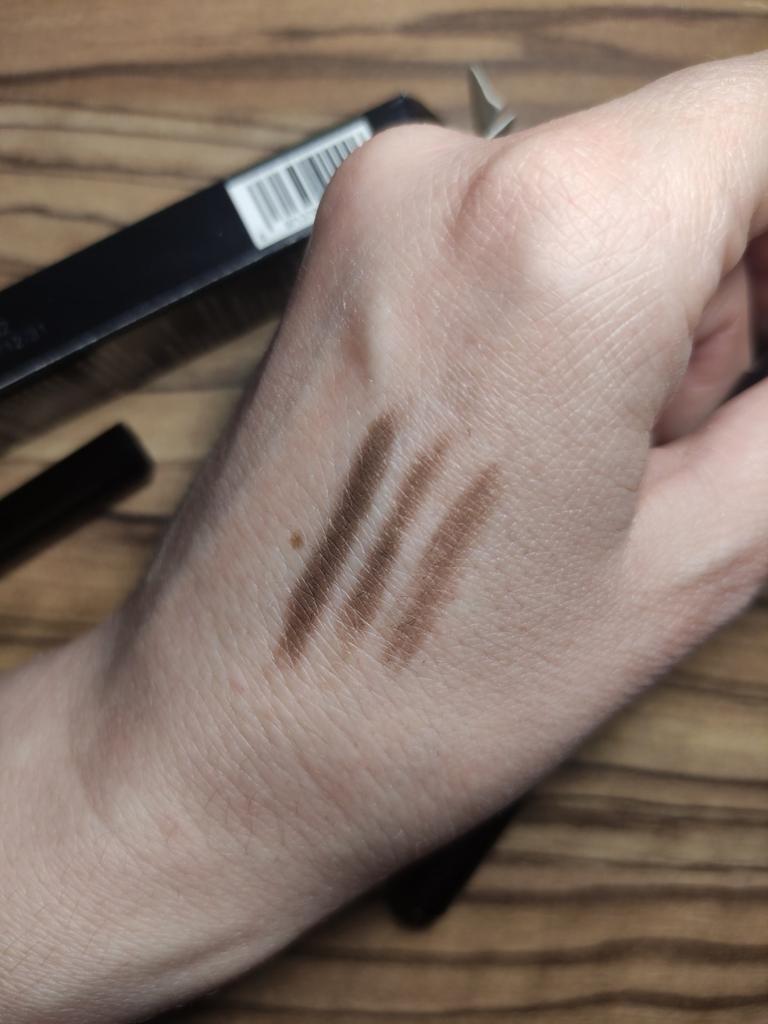 Карандаш для бровей Карандашами пользуюсь в основном всегда) Мне они удобны) Упаковка красивая) Пришел в коробочке. На ней информация по использования, так же состав и иная информация.) Карандаш автоматический, он двусторонний)Колпачки расположены с разных торон. С одной стороны щеточка , ей удобно растушевывать карандаш и причеывать бровки)А с другой стороны сам выдвижной карандаш. Он скошенный. Наносить тон им легко, довольно хорошо прорисовывает бровь) Цвет насыщенный) У меня в 3 тоне Black brown) По стойкости – хороший. Мне понравился )С цветом попала в точку) Доставка в РБ - недели) Могу рекомендовать)