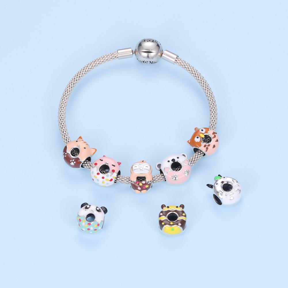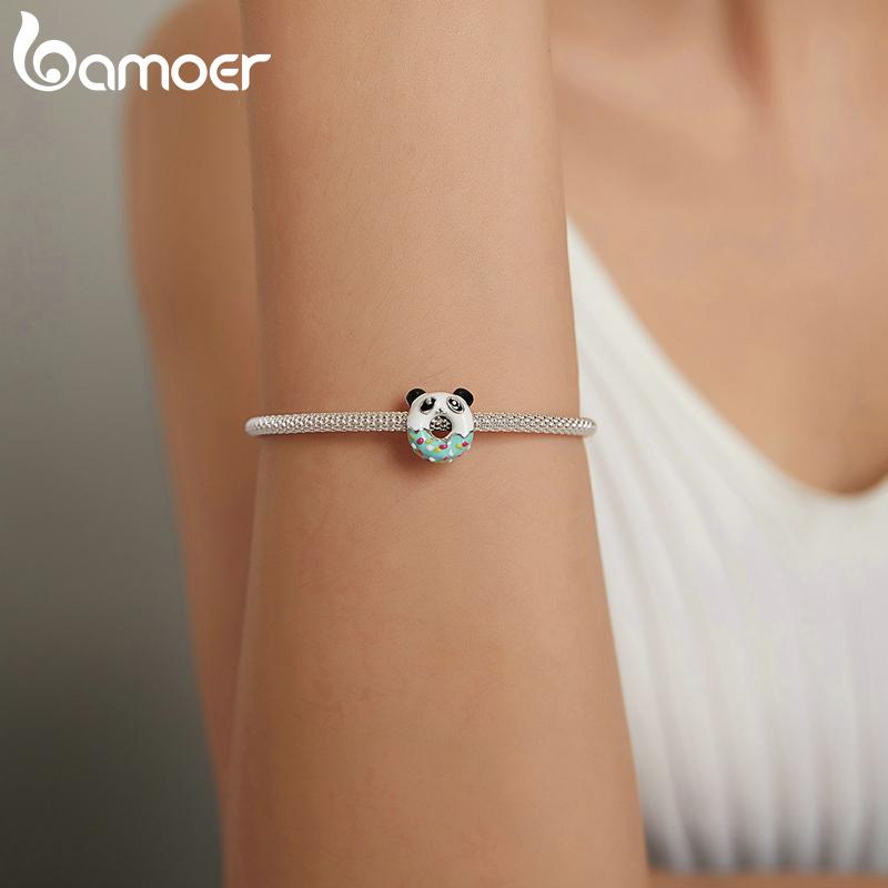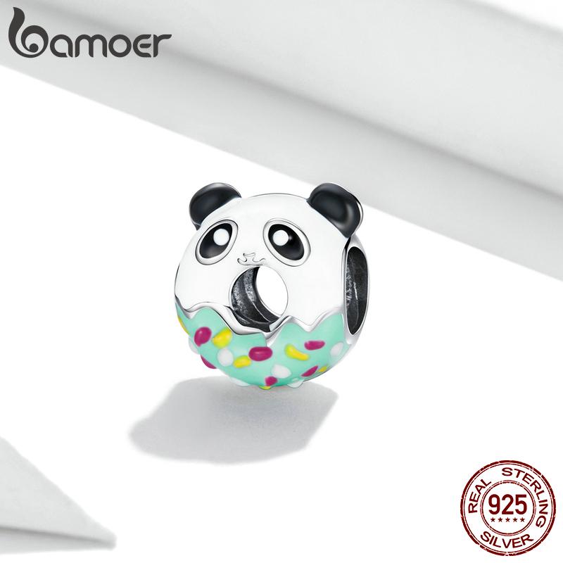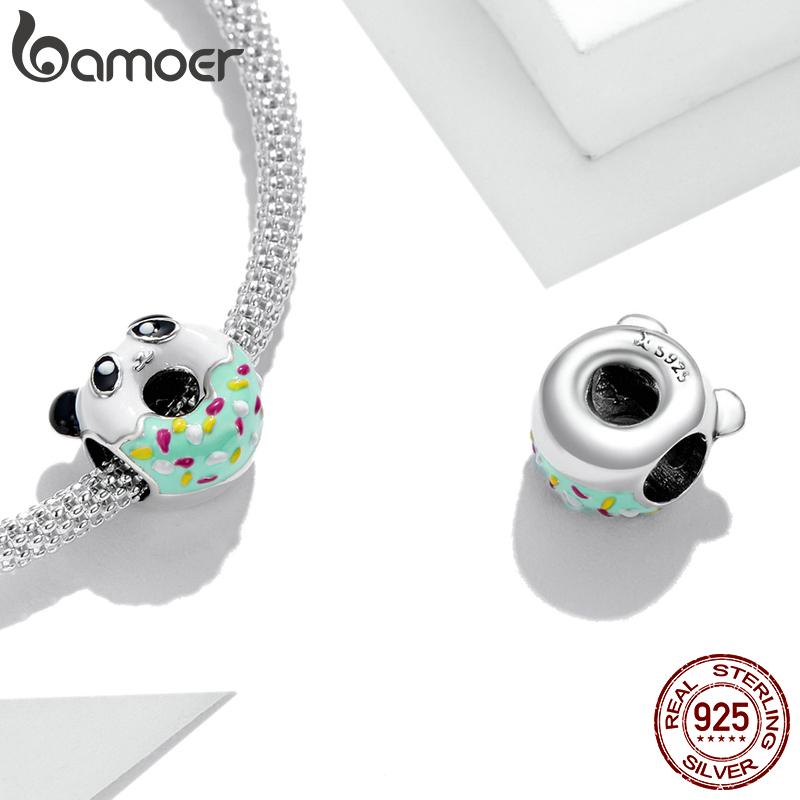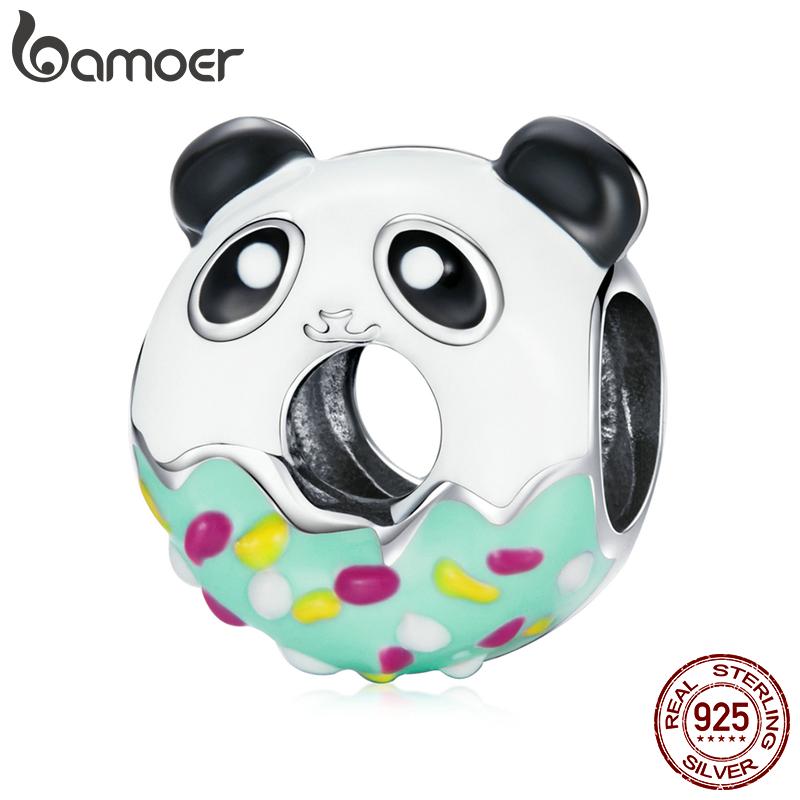 BAMOER Стерлингового Серебра 925 пробы прекрасный красочный эмаль мини-пончик и подвеска в виде панды для оригинального браслета женские ювелирные изделия
