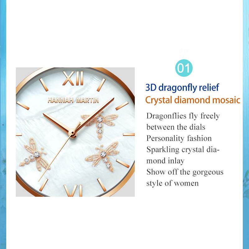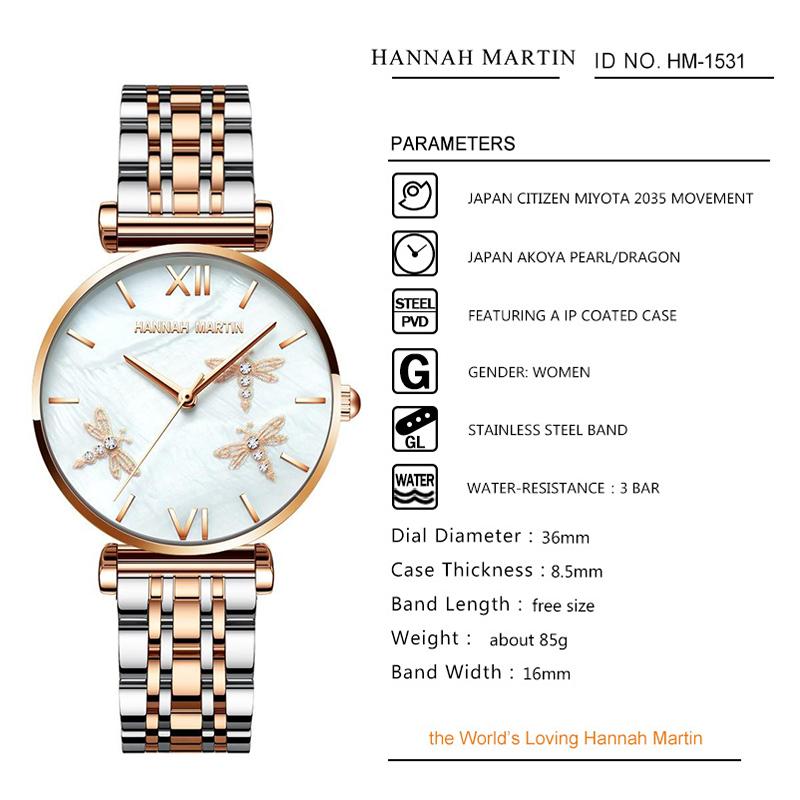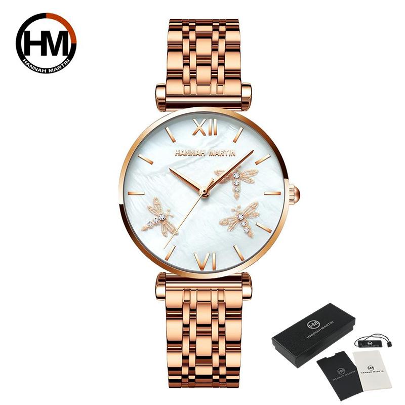 Hannah Martin Женские корейские роскошные водонепроницаемые кварцевые часы Лучший бренд Женские наручные часы