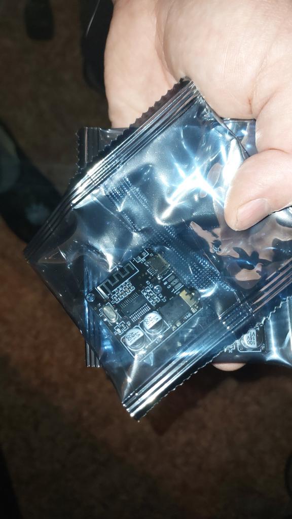 Пришла платка. Запакована была хорошо. Обёртка пупырная в почтовое пакете. Исполнение чистая фабрика. Никакой ручной пайки не заметил. Хочу старые наушники обновить. Продвинуть в сторону блютуза. Стерео должно присутствовать - два конденсатора на выходе. Единственный, при осмотре, недостаток выявился - это кривованое расположение микро юсб. На фото. Думаю не критично будет. Чем хороша эта плата -- не нужно заморачиваться с кнопками туда, сюда, пауза. Хотя кому как. Для создания блю колонки тоже подойдёт, только доп усилитель нужен будет. Также есть отверстие для допайки внешней антенны. Вердикт. Рекомендую.