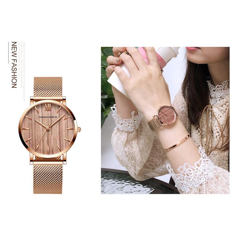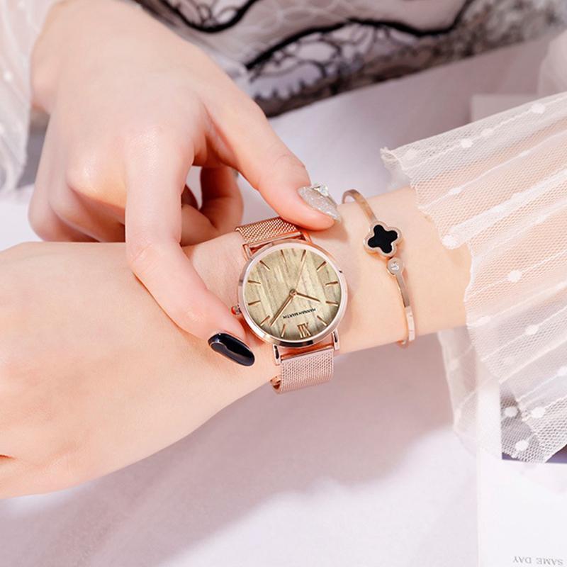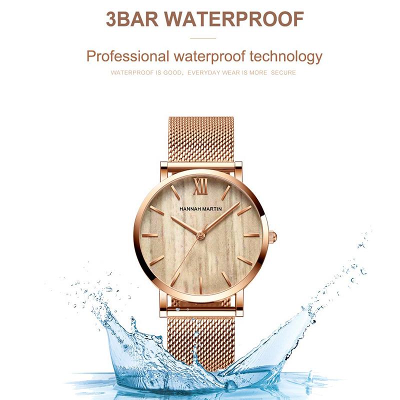 Древесина ореха, японский кварцевый механизм, женские часы, элитный бренд, сетчатый ремешок, водонепроницаемые женские наручные часы