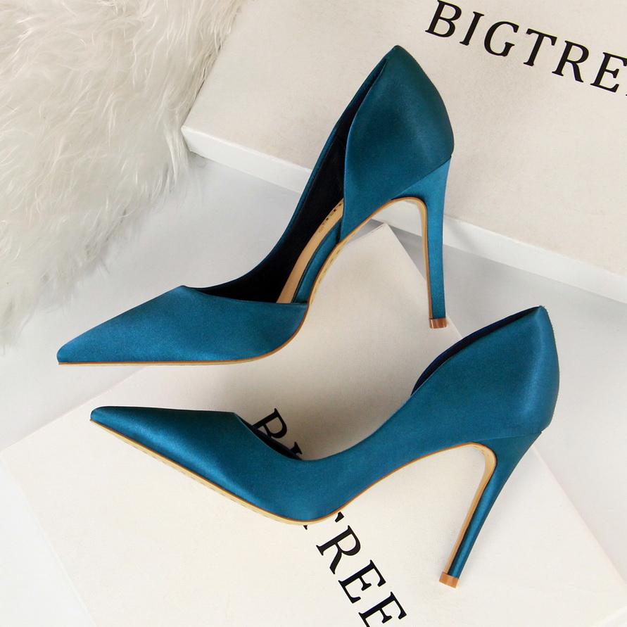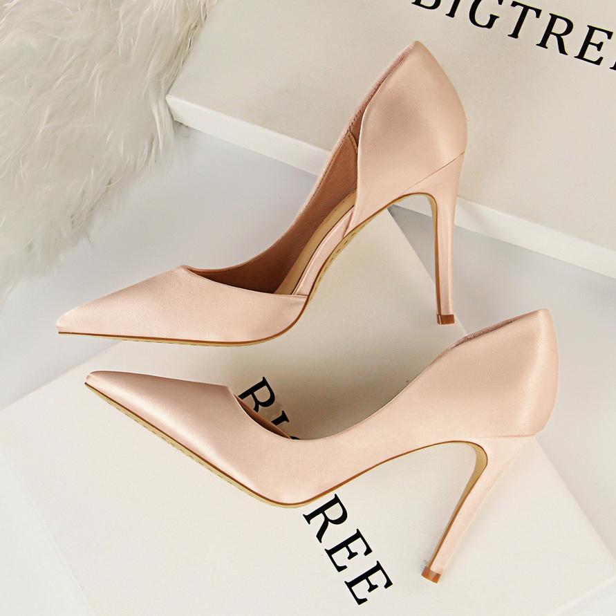Bigtree Женские атласные туфли на высоком каблуке с неглубоким краем и полым краем