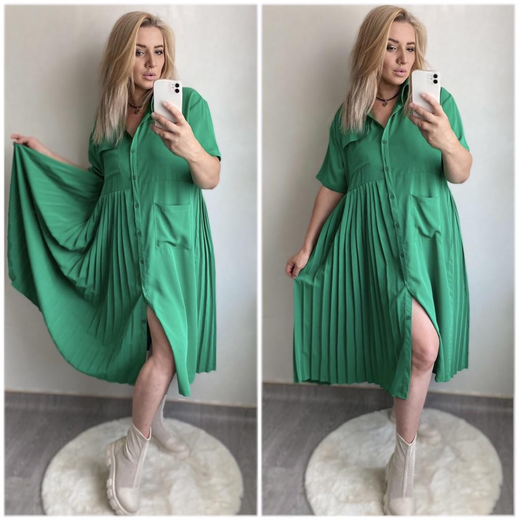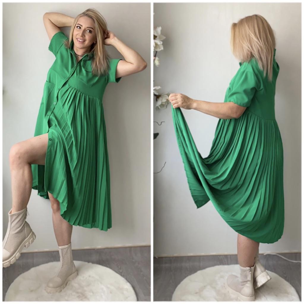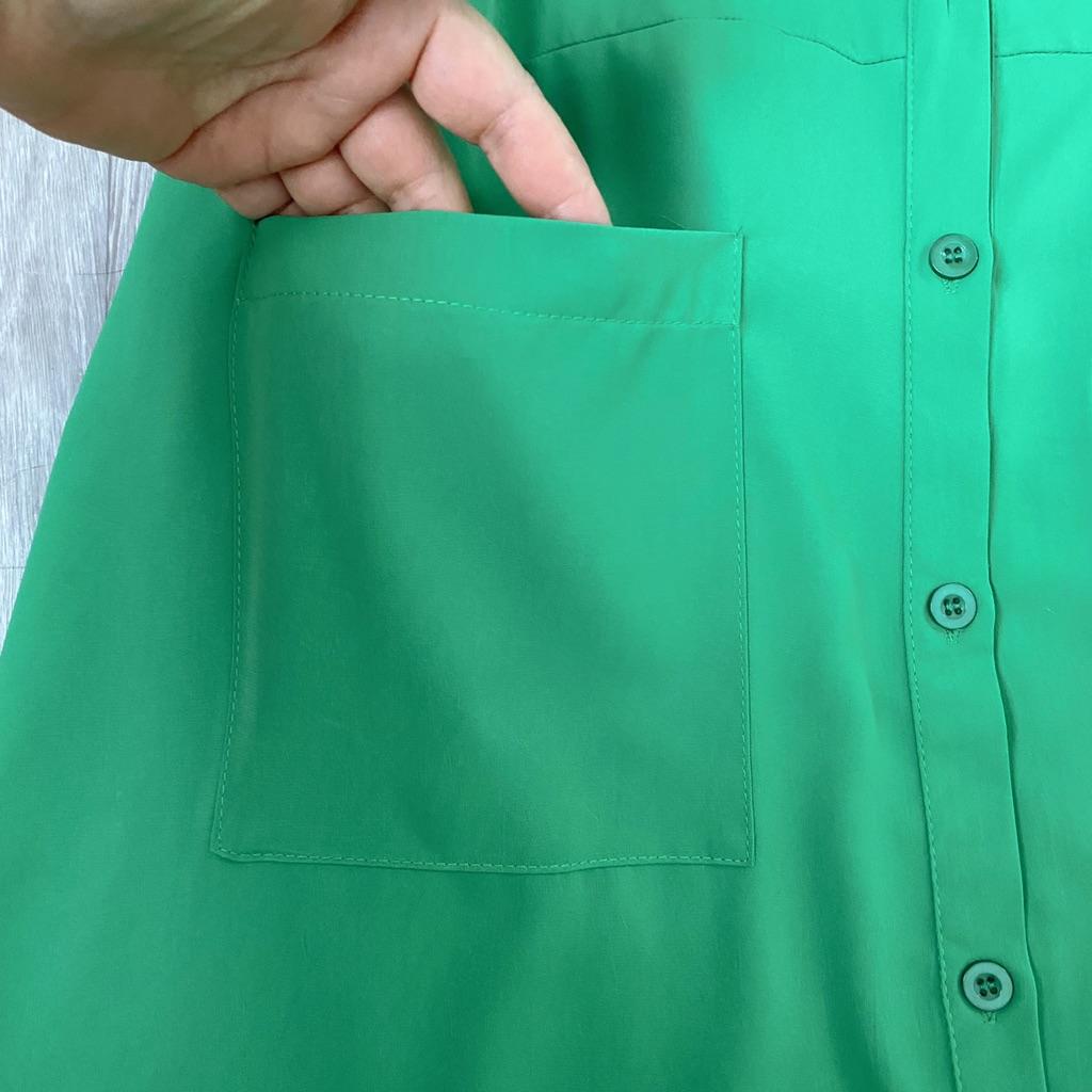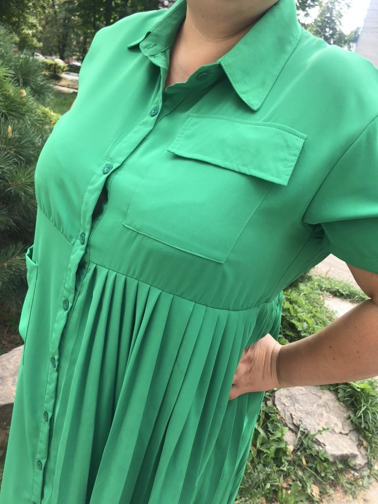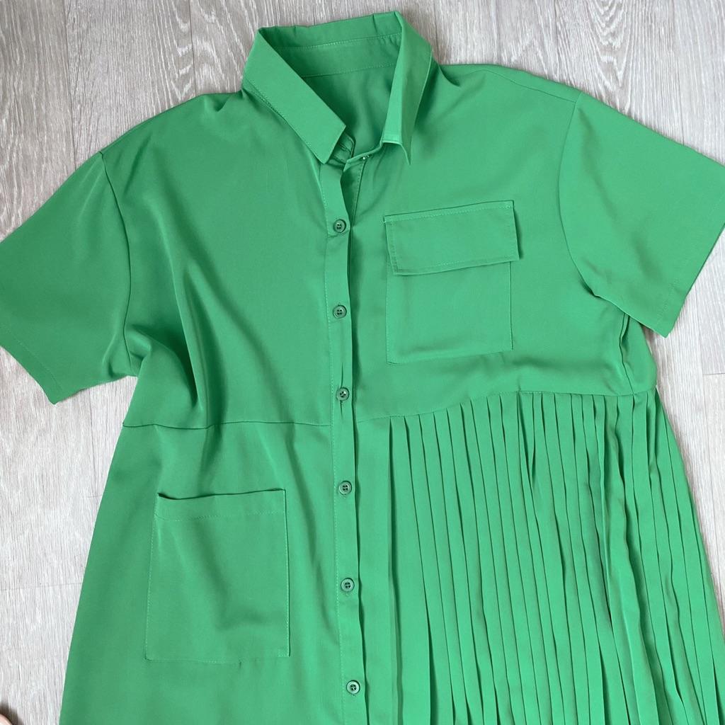 Ну очень интересное и необычное платье. А вы только посмотрите какой сочный зелёный цвет💚 я влюблена, платье прям Овер-оверсайз, смело могу рекомендовать его до 56 размера всем, и сядет оно классно, на мой рост 162 см длина до середины икры, ткань тяжёлая и ее тут очень много, к тому же плиссировка. Я бы сказала что тут одной ткани на цену платья. Ткань тяжёлая, шелковистая, летящая, не электризует. Не сильно мнётся, что радует. Рекомендую однозначно👍
