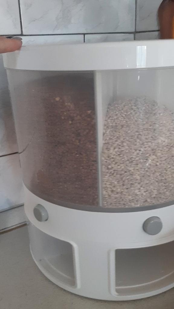 Получила контейнер для хоанения сыпучих продуктов. Очень понравилась емкость, удобная в использовании, спасибо продавцу. Отдельное спасибо за доставку.
