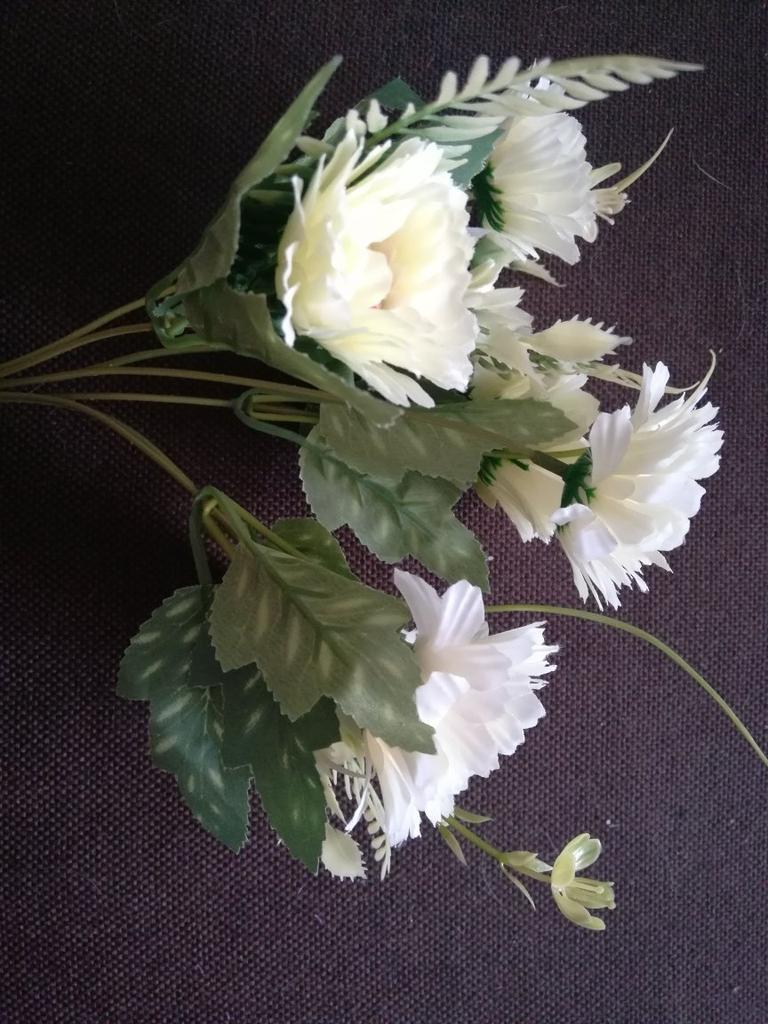 Чтобы получить букет, как на фото продавца надо 5 таких веточек! И есть небольшой пластиковый запашок от цветов, хотя они тканевые. Сами цветочки очень симпатичные,аккуратные. Купила за 251руб.