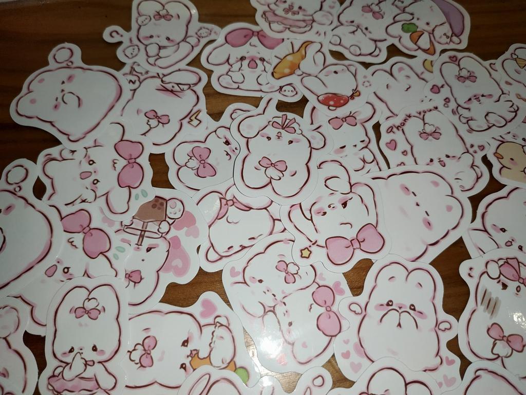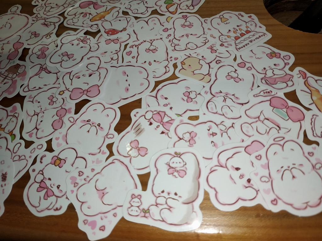 Очень милые наклейки - кролики🐰🐇 🐇 45 разнообразных наклеек 🐇 качественные, чёткие, без брака 🐇 упакованы в розовую маленькую коробочку 🐇 доча очень довольна, ждала их с нетерпением 🐇 размер приблизительно 4*4см (какие-то больше, какие-то меньше) 🐇 хорошо держатся, приклеиваются намертво 🐇 отличные, рекомендуем к покупке Доставка занимает 1 месяц, посылка сборная, упакована надёжно. Продавцу большое спасибо 💐 Всем отличного дня и хорошего настроения 💋 💐