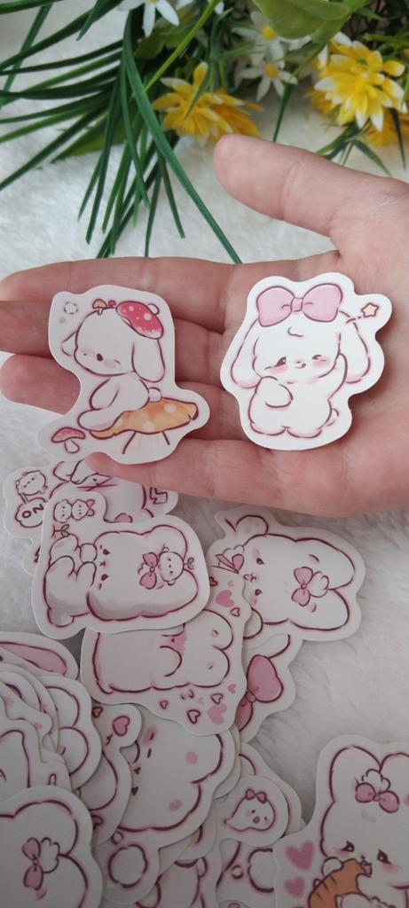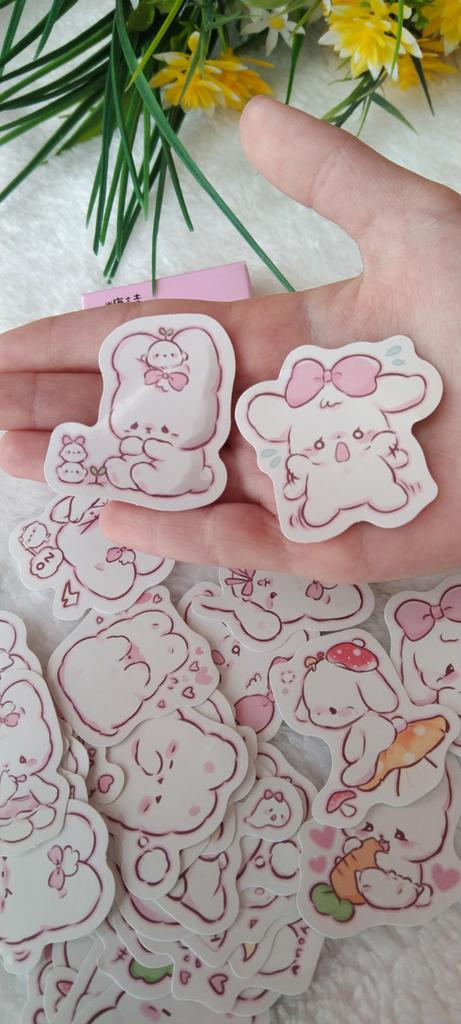 Милые стикеры с зайками, в коробочке 45 шт, все без повторов, кропнуты и вырезаны идеально, клейкая основа отличная. 🐇🐇🐇 И ещё одну наклеечку с мышатами продавец положил в подарок, спасибо! ✔️ Покупкой довольна, товар и продавца рекомендую! 🚛 Доставка около двух недель, кинули в п/я, упакованы хорошо.