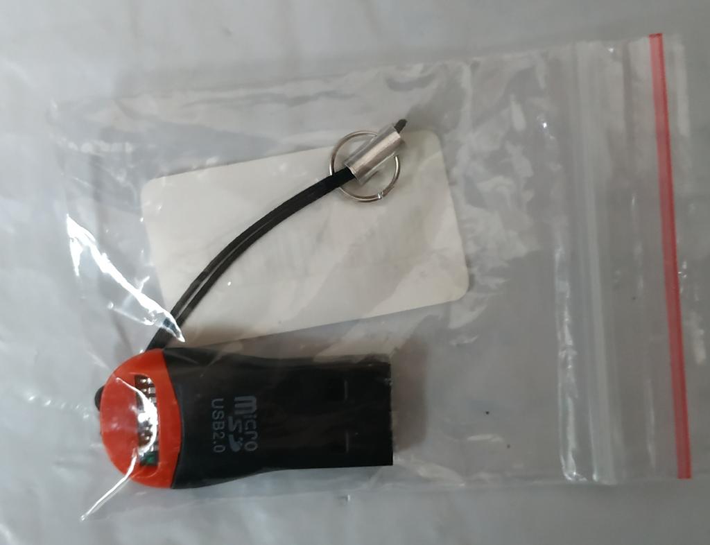 С товаром всё нормально, пришёл в целости и сохранности, в оговоренный срок. Работает. Фото прилагаю. На втором фото переходник и карта памяти мои, при подключению к телефону карту он видит, все операции идут.