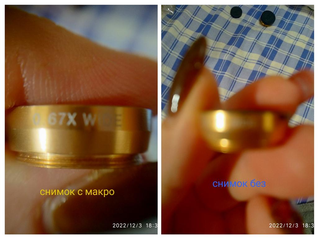 Всех приветствую ! Комплект объективов для мобильных телефонов . Честно,пока ещё не разобралась что к чему . Сделала пару фото ,могу сказать ,что мелкие детали увеличивает ,но пока не могу сфокусировать чтобы было четко. Буду разбираться . Дочка сняла небольшое видео - смотрите ! Всем удачных покупок ! Вроде бы немного разобралась : С объективом фото чётче и светопередача более правильная Нужно будет на улице попробовать . Вообще гаджет прикольный ! 👍