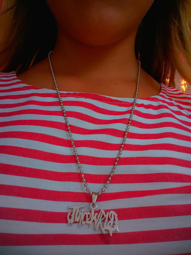 Заказывала 12.07.2021 ,получила 7.08.2021. Доставка на государственную почту. Отслеживался товар до страны назначения. Цепочка в длину 60 см., надпись 3.5 см., а в ширину 1 см.. Цепочка соответствует описанию.