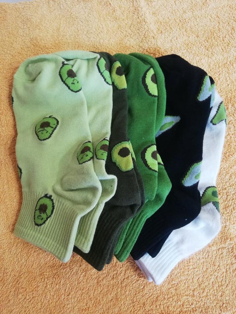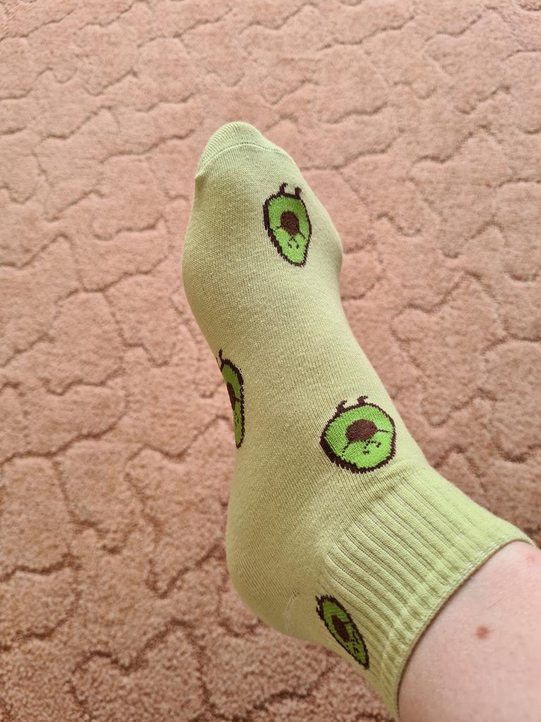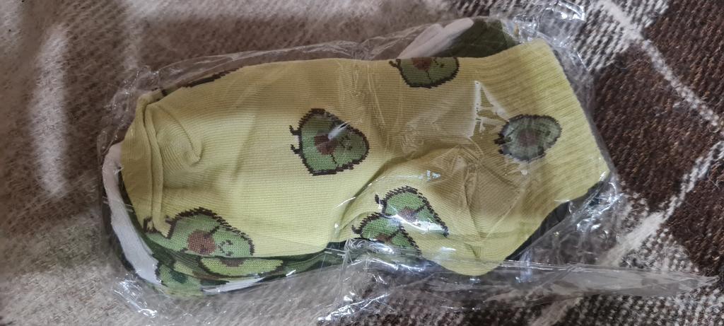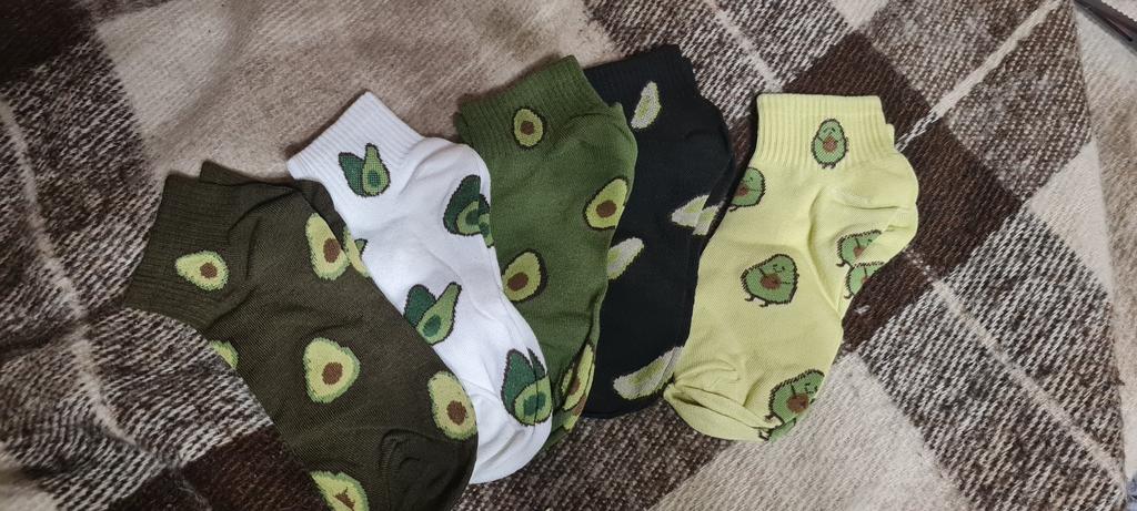 Носочки(5пар)-🔥, качество отличное, авокадки забавные, запаха нет, максимум на 37-38 размер, покупала за 266 рублей, как поведут себя в носке - посмотрим, посылка шла чуть больше месяца, продавца и товар рекомендую 😘