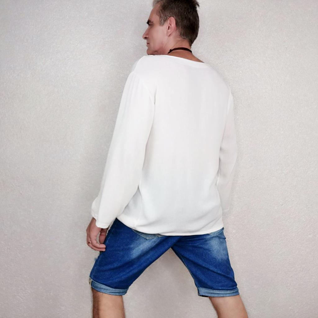 Рубашка отличная. Но есть один минус, это короткие рукава. Они не 3/4, просто короткие. По плевам и обхвату идеально. Пересмотрели отзывы с фото, все рукава закатывают. Пишу честно, они короткие. Можно закатать, это не портит впечатление. В остальном - супер!