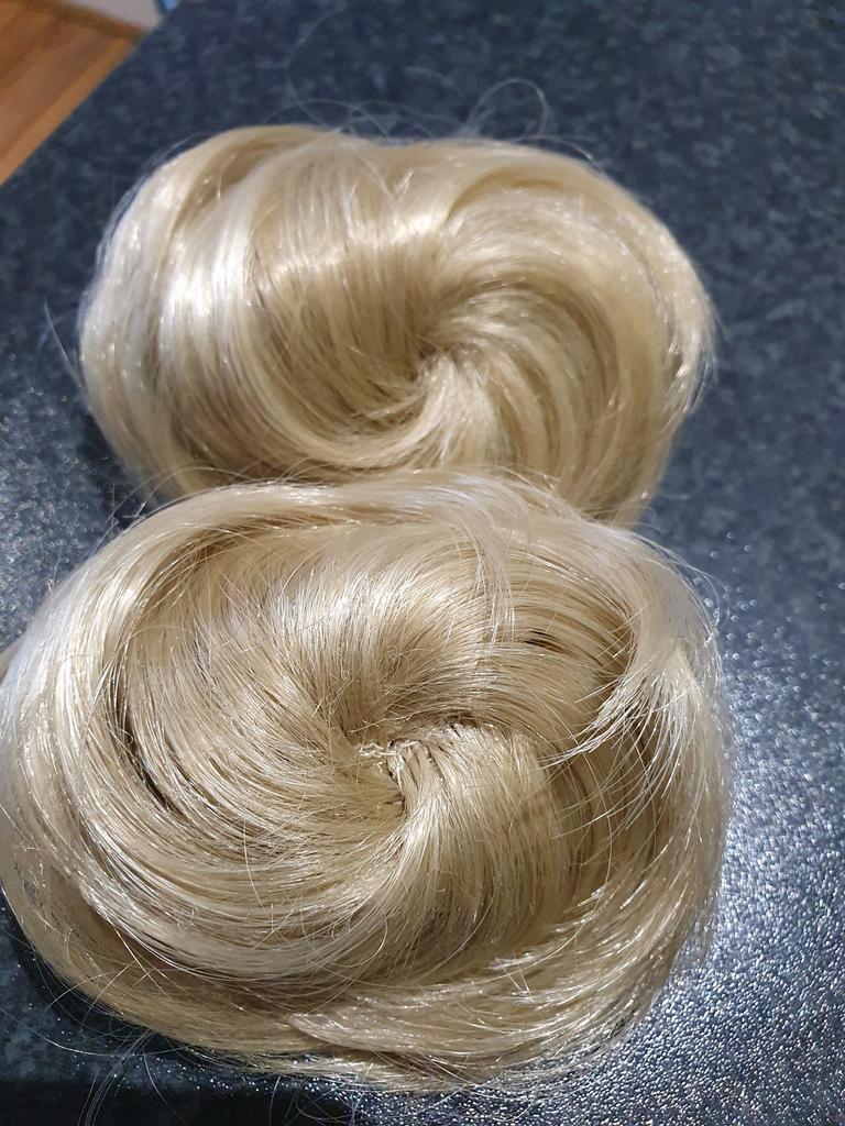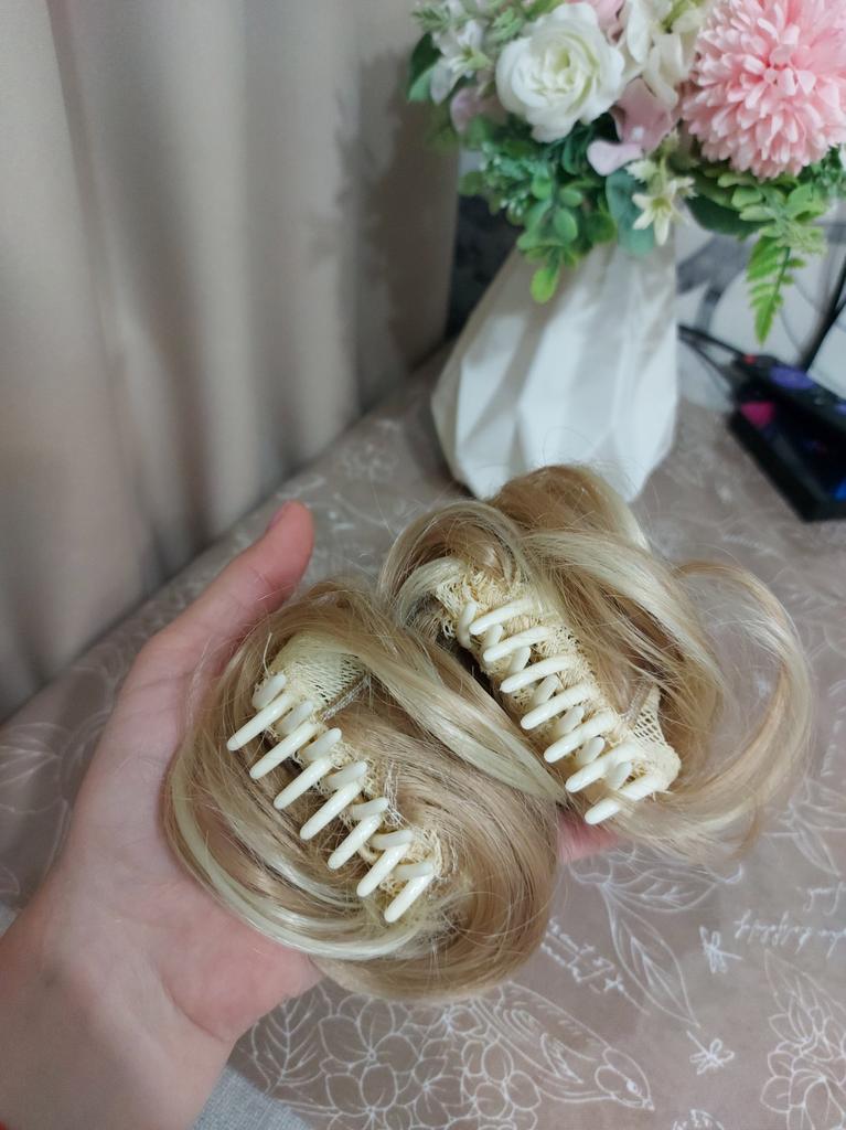 Заказала 2 шт , чтобы делать 2 пучка . Так более интереснее мне кажется . На 1 заколке крабик повреждён невозможно использовать, цепляю но боюсь по дороге потерять 😄. Чтобы эти пучки цеплять нужно приноровиться, я с распущенными волосами одевала их пару раз , убирая свою длинную челку назад и крепила к ней. Чтобы собрать весь волос в пучок и каким-то образом закрепить заколку у меня не получается - такой я рукоЖ*п 😁. В целом неплохая безделушка. От своего цвета волос немного отличается , не понравилось то что есть блеск искусственного волоса . Покупала с купоном по 202 руб. Деньги вернули за 1 повреждённую заколку , спасибо.