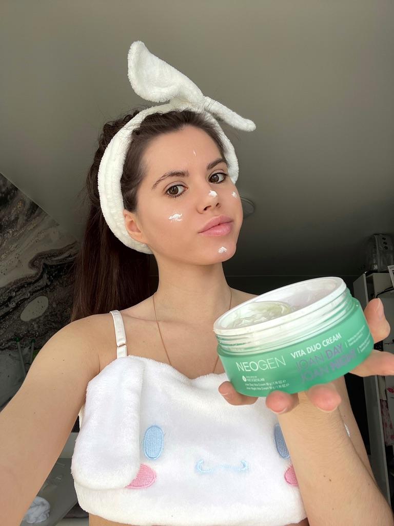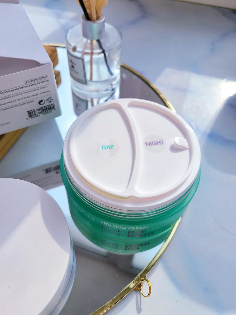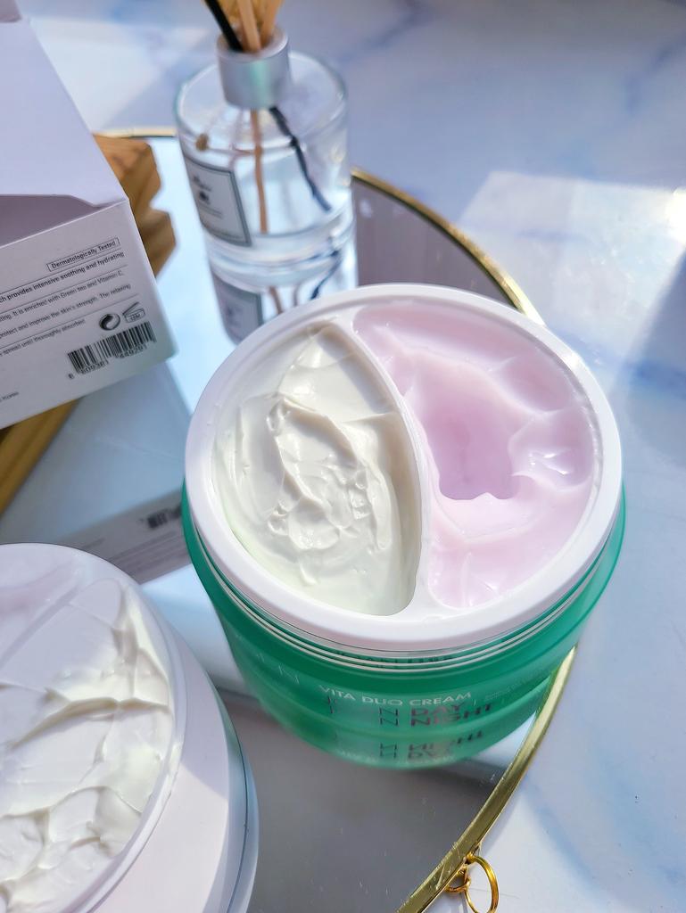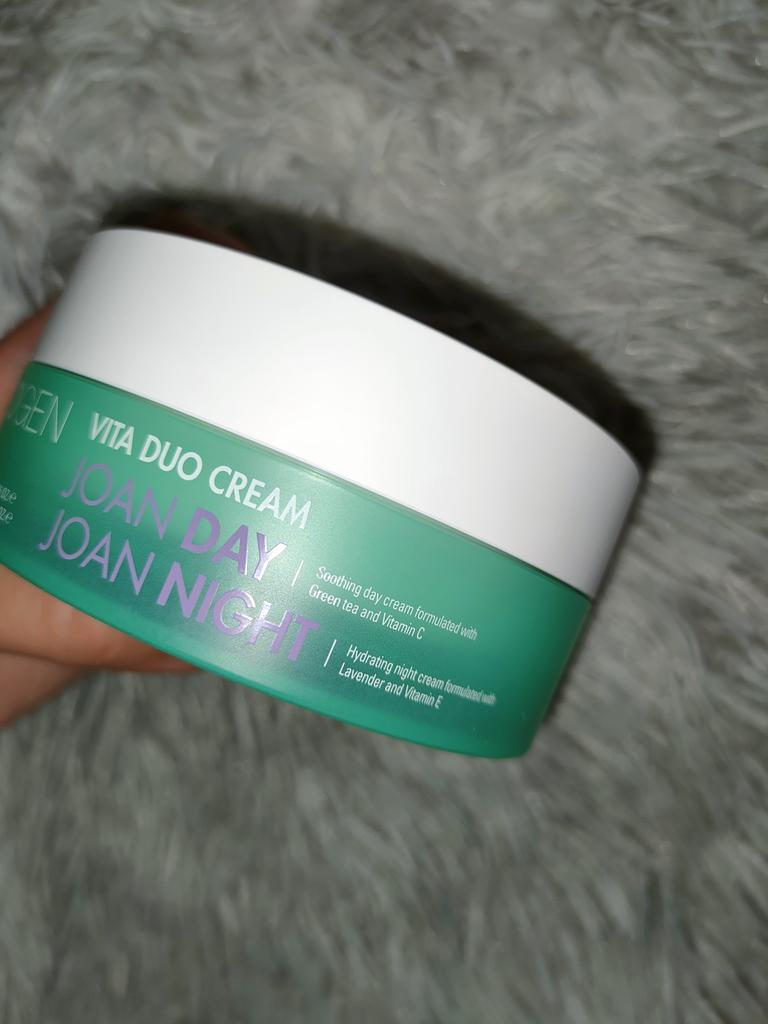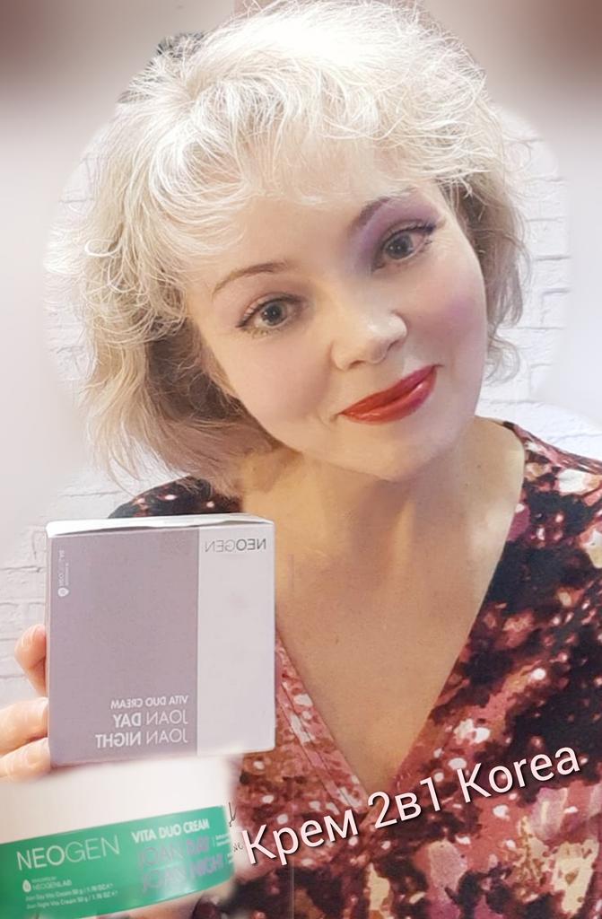 ВСЕМ ПРИВЕТ 🙋💖 🌸[Neogen] Vita Duo КРЕМ ИЗ КОРЕИ🌸 Вес: 100г. Корейские крема очень люблю, ни разу не была разочарованна. Что замечательно в этом креме🤔😁👍 В одной баночке заключены сразу два идеально подобранных друг для друга крема: дневной и ночной, выполняющие совершенно разные функции в соответствии с различными потребностями кожи в утреннем и вечернем уходе. Дневной крем joan day vita cream: увлажняющий крем, который успокаивает кожу с помощью действия зелёного чая, а также придаёт тонус и энергию уставшей коже за счёт содержания аскорбиновой кислоты. Ночной крем joan night vita cream: ежедневный ночной крем, содержащий лаванду, которая подарит успокаивающий эффект, и витамин Е, стимулирующий природную силу кожи. СОСТАВ: витамин Е, лаванды масло, витамин С, зеленого чая экстракт👍 Более подробное описание вы можете прочитать у продавца. Крем приходит в коробочке, надпись на верхней крышке на английском: Приятного вам дня и ночи🤗😘 Внутри есть надписи разделяющие крема на дневной и ночной 👍 Они отличаются по цвету, не перепутать😁 Плотно закрывается с рисочкой. Запах без парфюма, если кто ожидает 😁 Крема хорошо впитываются, не жирные. Спасибо большое продавцу и JOOM 🥰 РЕКОМЕНДУЮ! Всем добра и отличных покупок 💐💞