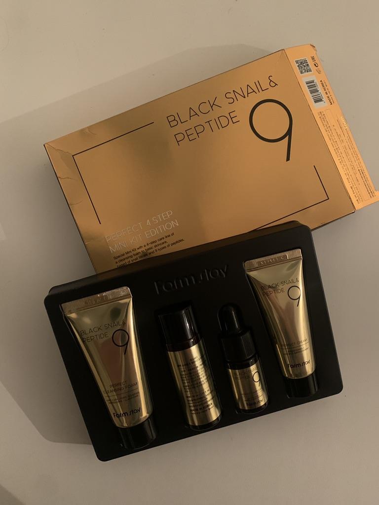 FARM STAY Black Snail & Peptide9 Perfect 4 Step Mini Kit Edition (Тонер+ампула+крем+очищающее средство) — купить товар онлайн с бесплатной доставкой до всему миру!