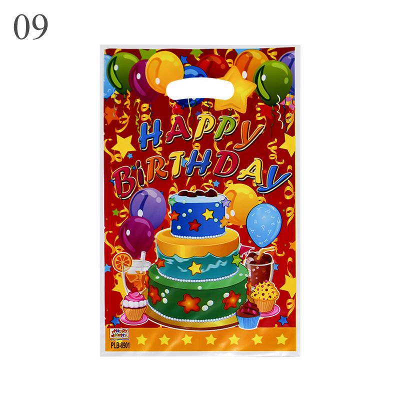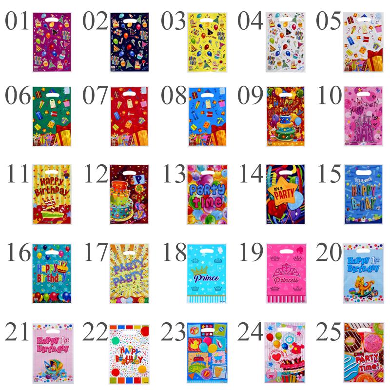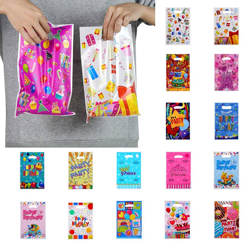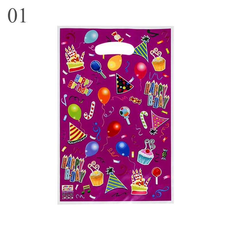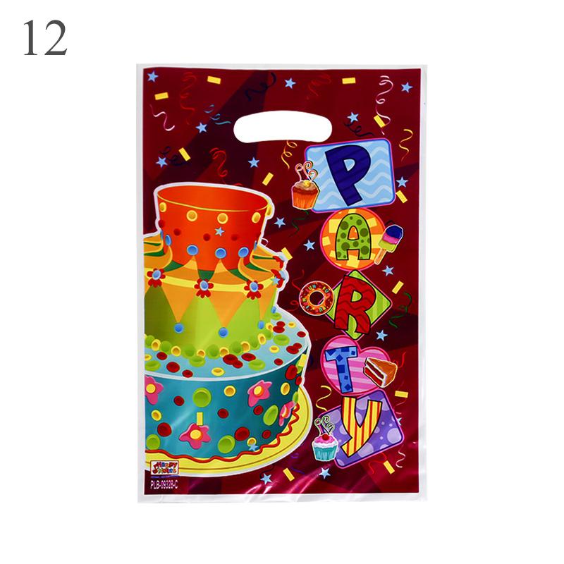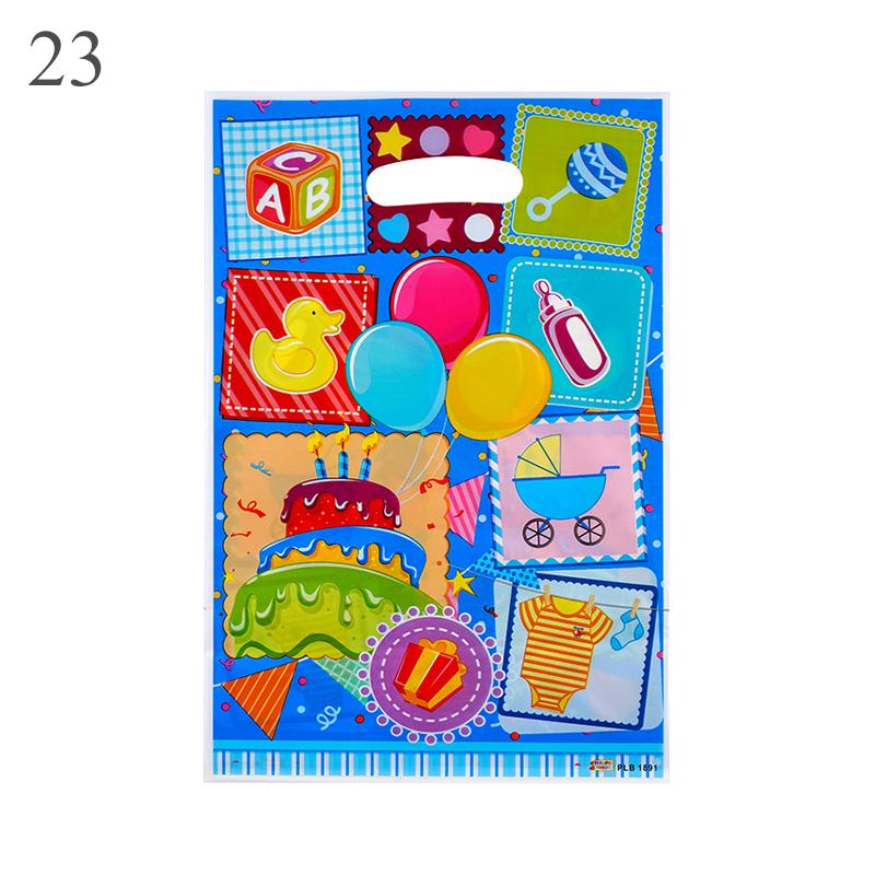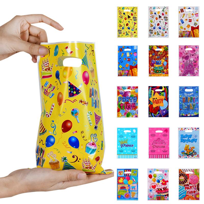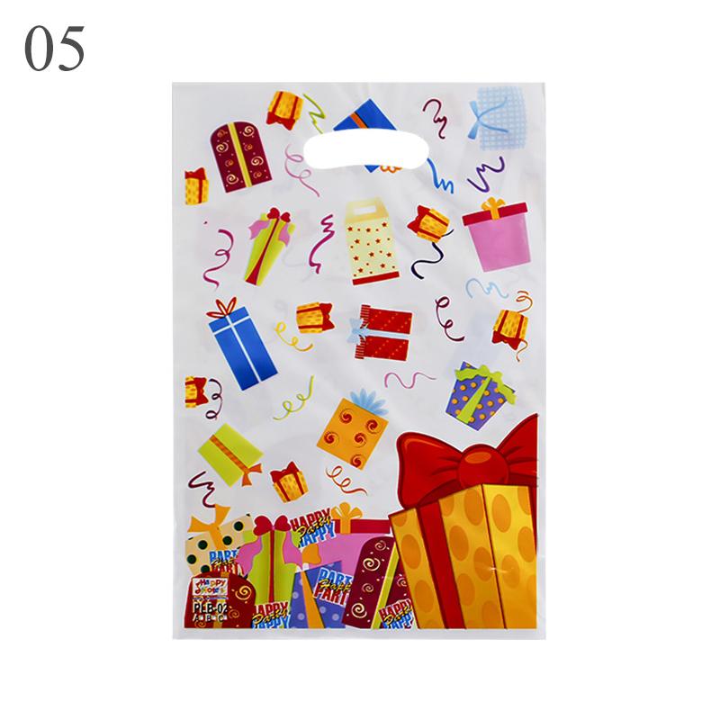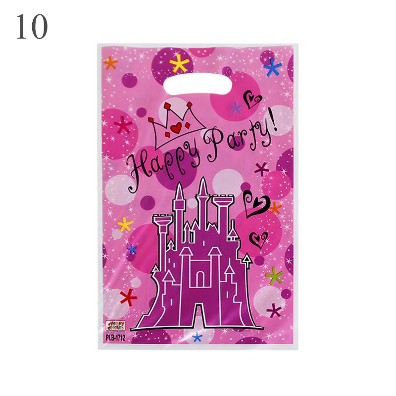 10 шт./лот для мальчиков и девочек, детский пластиковый мешок для конфет на день рождения, вечерние сумки с принтом, подарочные пакеты для детей