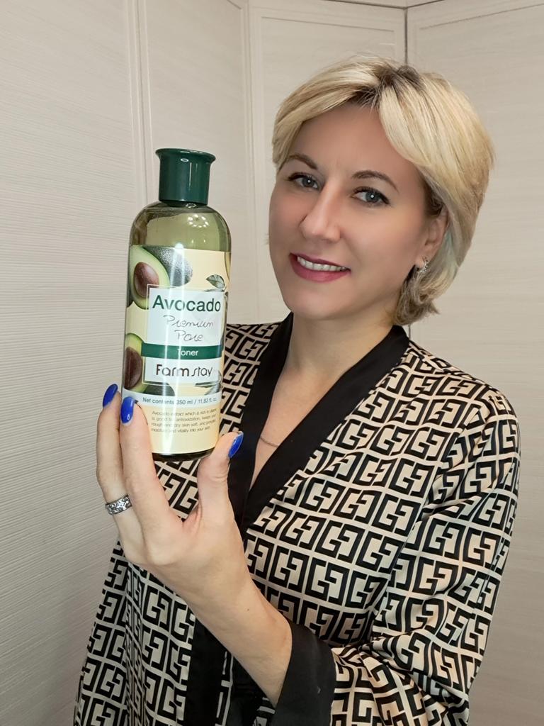 Корейский тонер от FARM STAY👌💯 🩵 Фотообзор + видео🎥 ❤ Жду вас на моем Telegram канале 🔎 ЕвгенияДжум 💕💕💕 где всегда свежие промокоды, обзоры на купленные товары и общение👍 Присоединяйтесь💐🌷🥰 💜 Красивое оформление, объем 350 мл, срок годности до 11.07.2026 г, а какой запах нежный, консистенция густоватая 🩵 FarmStay Avocado Premium Pore Toner, 350ml — этот тонер разработан для кожи с тусклым тоном, неровной текстурой и признаками возрастных изменений. 💚 Он помогает сократить морщины, глубоко увлажняет и выравнивает цвет лица. Восстанавливающий тонер с экстрактом авокадо🥑🥑🥑 удовлетворяет потребность кожи во влаге 💜 Средство отлично смягчает и успокаивает кожу после умывания, убирает стянутость и дарит ощущение комфорта, рекомендую 👌💯 🩵 Удачи на просторах Джум 💃💃💃