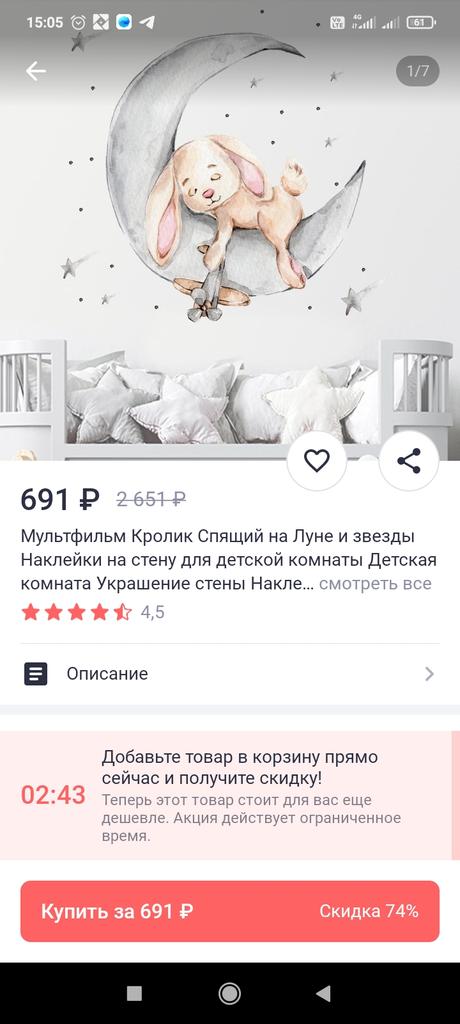 Интернет-магазин Joom предлагает вам недорогие и качественные товары. Наклейки на стену с мультяшным кроликом, спящим на Луне и звездах, для детской комнаты, украшение для детской комнаты, наклейки на стены, интерьер комнаты: цены в Joom самые низкие! Много реальных отзывов с фото! Хотите купить товар еще дешевле? Следите за нашими скидками и акциями!