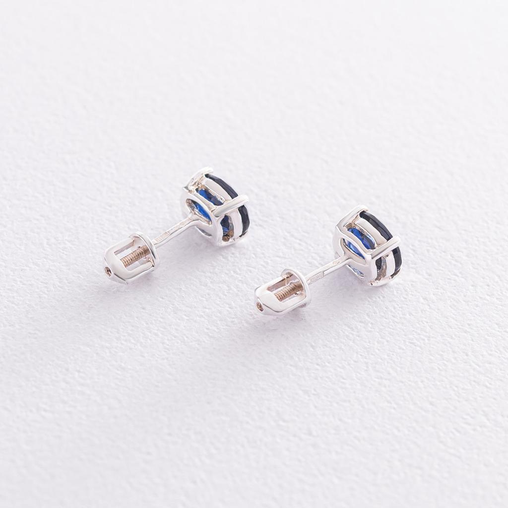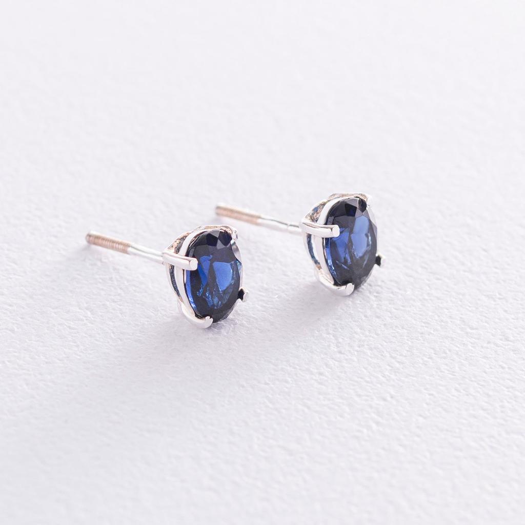 Серебряные серьги-пусеты с синт. сапфиром нано 6х8 Oniks