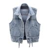 Джинсовый женский жилет, осенняя джинсовая куртка больших размеров, модные свободные однобортные короткие пальто без рукавов, повседневные бандажные жилеты