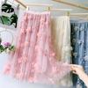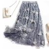 Роскошные женские юбки в корейском стиле, модная эластичная талия с аппликациями и вышивкой, сетчатая юбка с цветочным принтом, длинная газовая бальная юбка