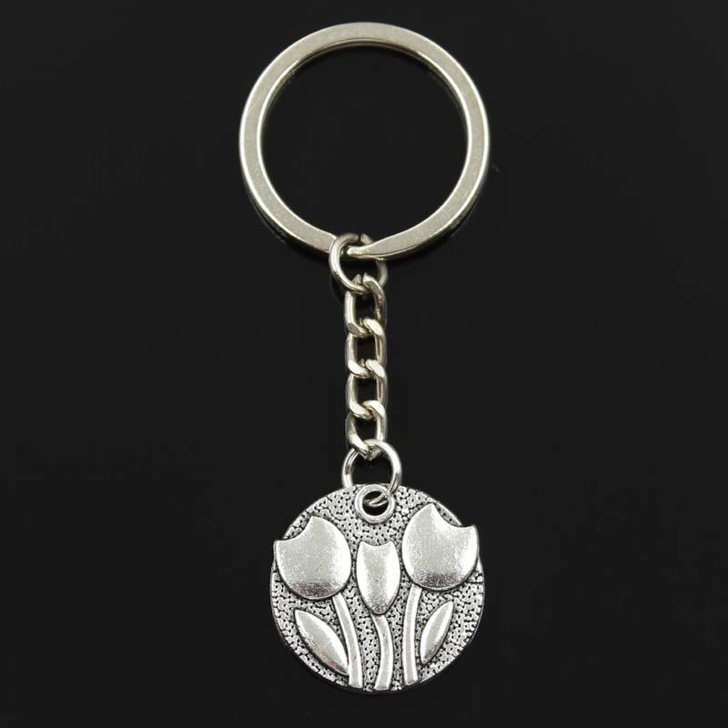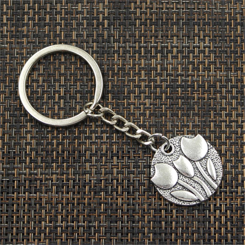 Модные цветы тюльпаны 25x25 мм кулон 30 мм брелок для ключей металлическая цепочка серебряного цвета для мужчин автомобильный подарок сувенирный брелок