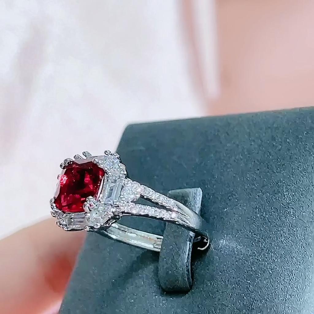 BELLA BOX Роскошные квадратные красные женские открытые кольца, классические изящные украшения для свадьбы, помолвки