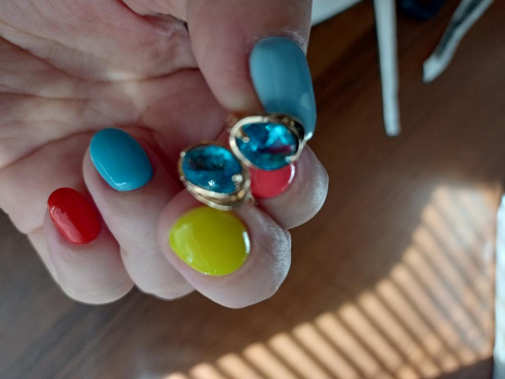 Серьги маленькие красивые камешки горят как дорогие от золотых неотличимо,я довольна покупкой,если выбрать камень потемнее думаю будут смотреться ещё круче . Смотрите внимательно очень маленькие,если мочка крупная или прокол в мочке не ровно могут не подойти. Спасибо продавцу.й1