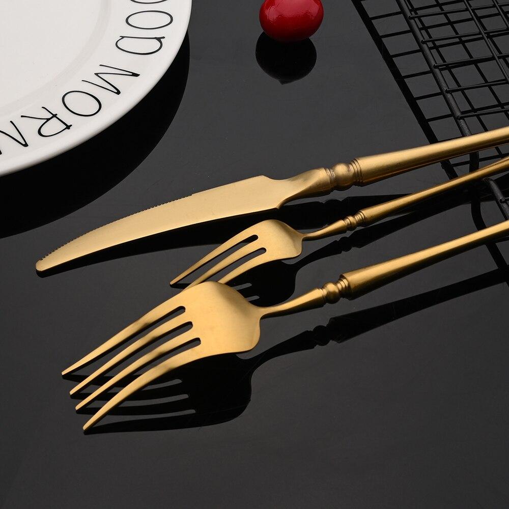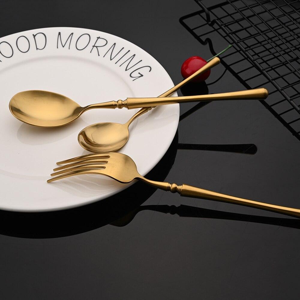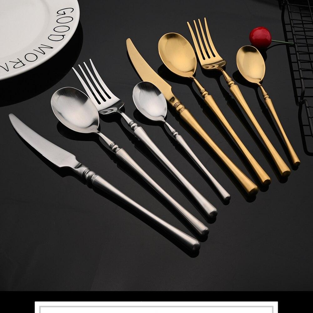 Винтажный матовый золотой набор столовых приборов, набор столовых приборов из нержавеющей стали 304, посуда, домашний нож, вилка, ложка, набор столового серебра