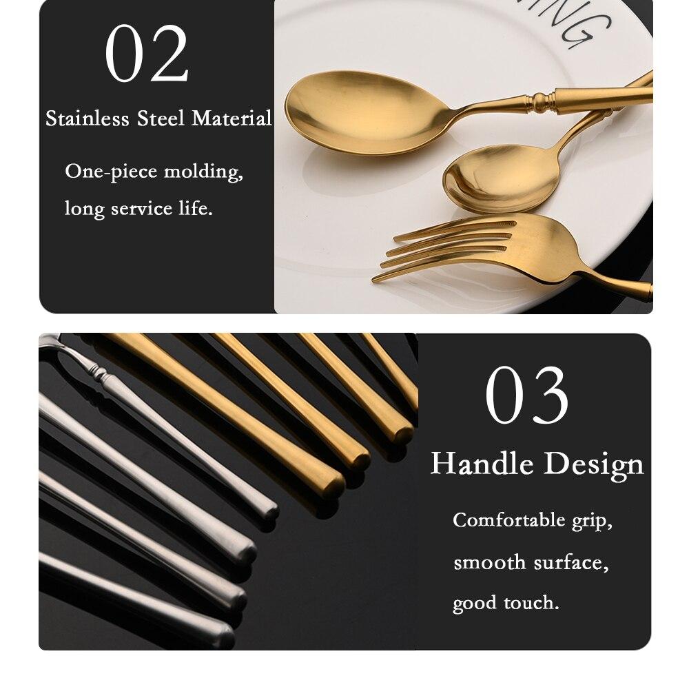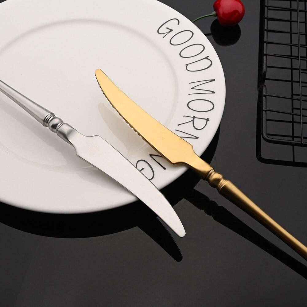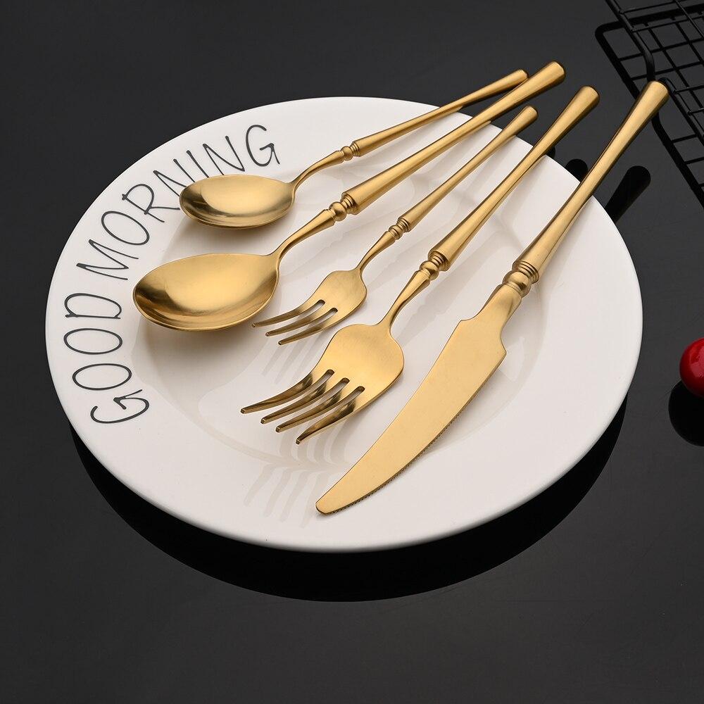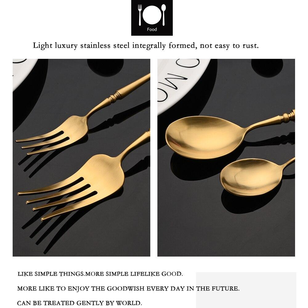 Винтажный матовый золотой набор столовых приборов, набор столовых приборов из нержавеющей стали 304, посуда, домашний нож, вилка, ложка, набор столового серебра