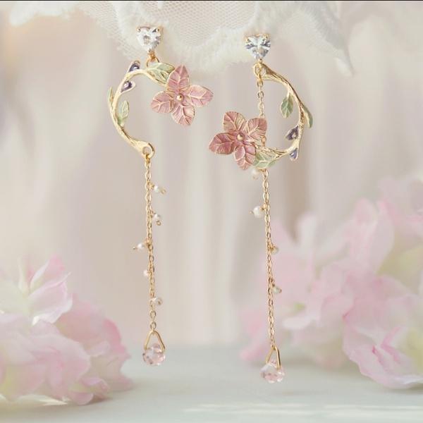 Длинные асимметричные серьги-капли из металлического сплава с цветком вишни для женщин
