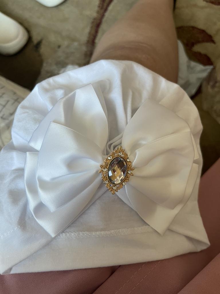 Шапочка-тюрбан👧🏼 я просто в восторге😍 Шапочка очень красивая и цвет и модель просто прелесть. Шапочка аккуратно, нитки нигде не торчат, запаха не было. Упакована была в простой пакет, бант не помят, брошка приклеена как и сам бант. За такую цену это просто шикарный товар. Возможно закажу еще в другом цвете. Рекомендую всеми руками. Спасибо продавцу и Джум!