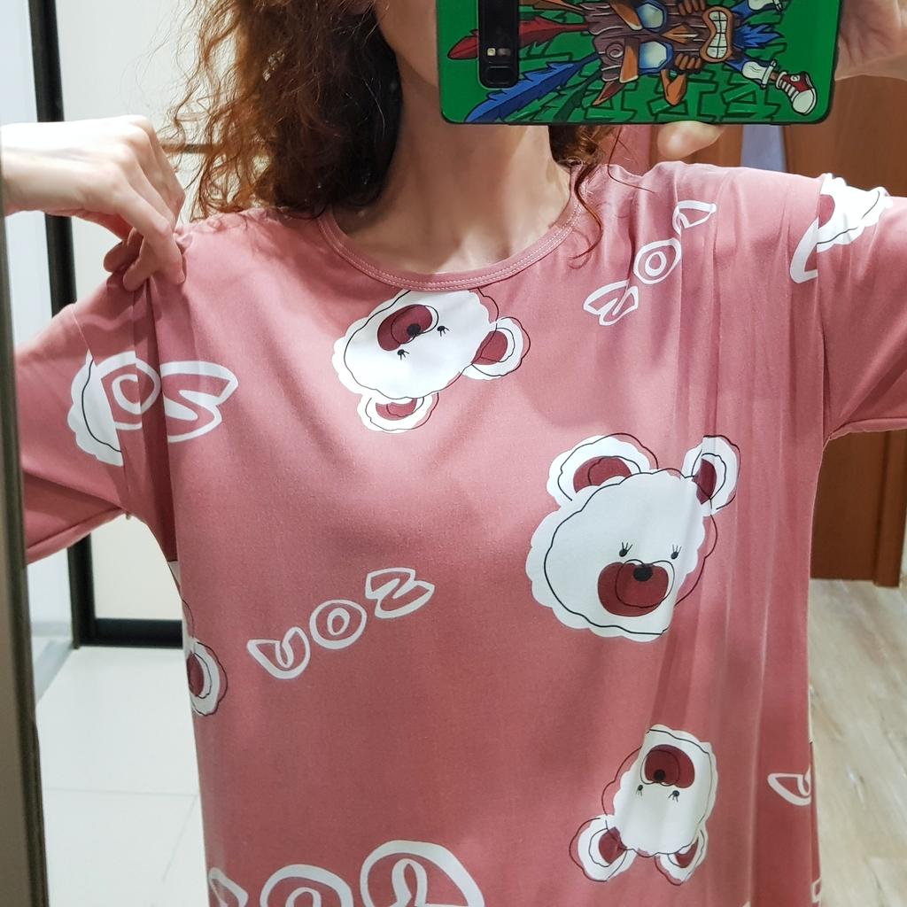 И ещё одно милое домашнее платьице. На этот раз с рукавами). Брала носить в качестве домашнего платья, но к нам так резко пришла осень, что платье пришлось переквалифицировать в ночнушку). По ссылке много симпатичных расцветок. Я выбрала чудесный терракотовый цвет и мишек. Платье совсем простенькое, зато удобное). По сути это длинная футболка. На мне размер - XL. На параметры 92/72/92 село свободно. При росте 182 см. длина приличная. Материал - полиэстер, но он мяяяягонький. И даже немножко имитирует хлопок. Пошив аккуратный. Упаковка - пакет. Неприятного запаха не было. Мой итог: За свою цену - чудесная вещь. Стираю в машинке, все ок.