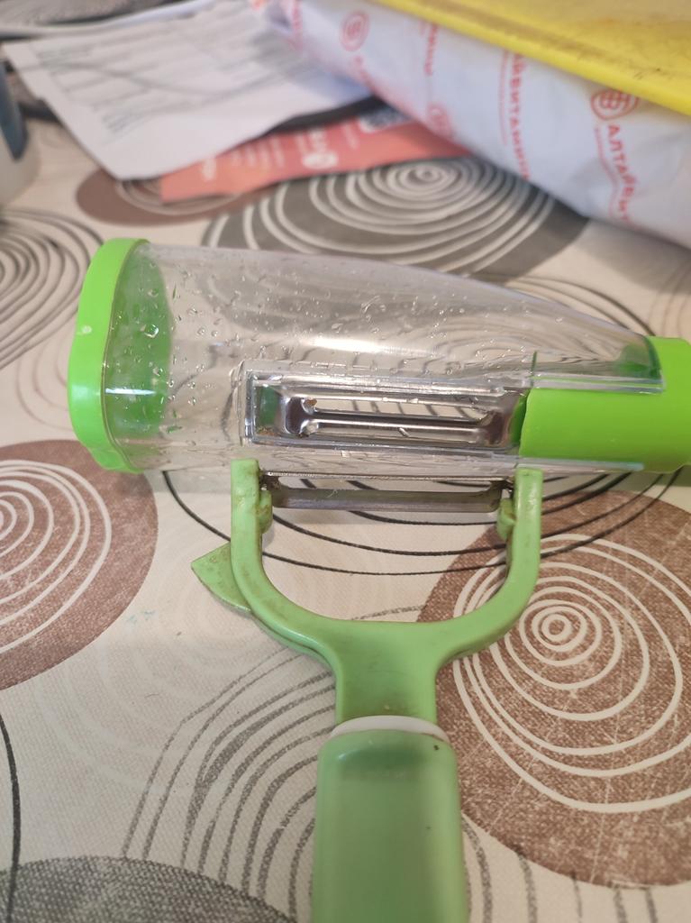 Заказал 8 августа, получил сегодня 8 октября. Претензий к китайскому Джуму в отношении доставки - никаких. До страны назначения заказ долетел в свои обозначенные сроки, а потом надолго задержался в СЦ населённого пункта Кяхта, что в Бурятии. Если вы увидите, что ваш товар прибыл в страну назначения и оказался в Кяхте, то ждите ещё целый месяц. Об этом бурятском СЦ уже складываются анекдоты и мемы. Теперь о товаре. Положительных эмоций - zero. Обычная овощечистка, чистит архиплохо, часть шкурок, например, от моркови, никак не хочет складироваться в контейнер, много летит в раковину или на пол. Покупайте российскую овощечистку, она надёжнее и строгает прямо в раковину, из которой можно сразу всё быстро убрать. У китайской овощечистки очищаемые шкурки застряют в зубьях ножа. Для сравнения китайской и русской чистки публикую фото. Продавца не рекомендую. Если приглядеться к третьей фотографии, то можно увидеть остатки очистков от моркови, после тщательной промывки под напором воды. Товар не прошёл экзамен, провален на все 100 процов.
