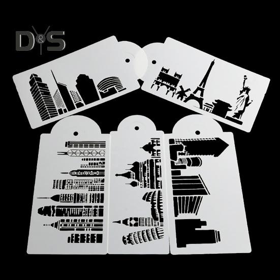 5 шт., трафарет для торта, ориентир, строительный узор, инструменты для выпечки, ПВХ, сделай сам, украшение для десерта, тиснение, форма