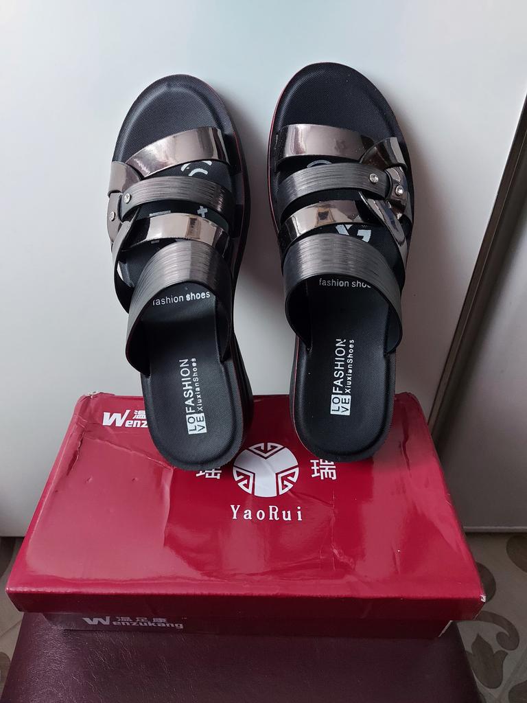 Заказала шлепки 13.06.22 за 904 рубля с доп. Скидкой по купону. На почте забрала 04.08.22. Гуляли мои шлепки в общей посылке с несколькими заказами месяц по Китаю и месяц по России. Это абсолютная клеенка, при распаковке был запах клея и резины, сейчас выветрился. Пришли они в коробочке, что удивительно и не сильно помята. Сегодня их первый раз решила одеть. По удобству средне, т. к это синтетика, то в жару будут сильно скользить, на постоянную носку они не подойдут. Это чисто надеть и добежать до магазина и или что то вроде того. Смотрятся не плохо, на ноге сидят удобно, плотно, но не туго. Рассчитаны на среднюю полноту ноги. Размер полностью соответствует размерной сетке продавца. На подошве написан размер 24,5 Впринципе, шлепки смотрятся хорошо, не дешево, вроде прочно все проклеино, ни где не торчит ни клея ни ниток, но все-же 5 🌟 я поставить не могу. Что то в них не то. Потом, когда хотя-бы несколько дней в них похожу, я изменю свое мнение, а пока так.